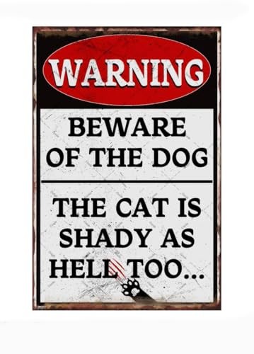 Warning Metal Tin Sign Beware of the Dog the Cat is Shady As Hell Too Funny