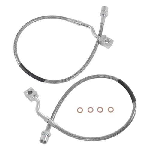 Included Components: 2pcs stainless brake lines and 4pcs washers.