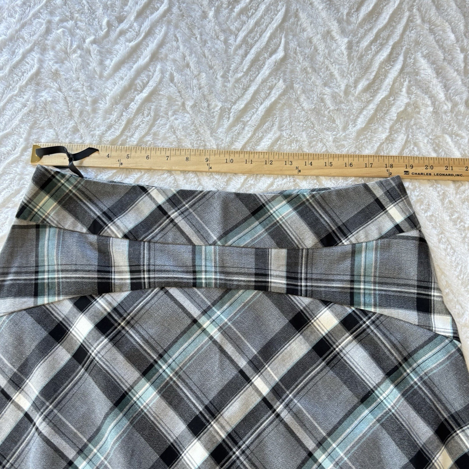 Vintage Skirt Plaid Academia Preppy Retro Y2K Gray Blue Black A line Midi SZ 16