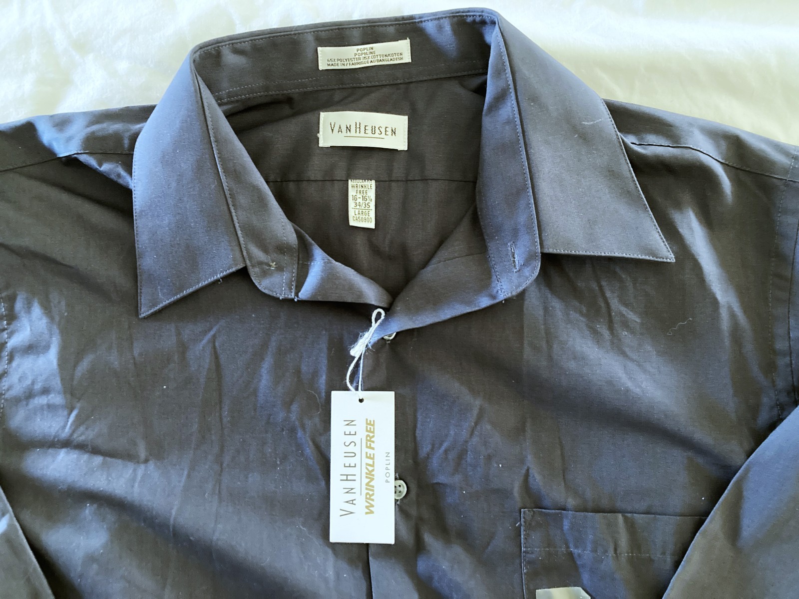 как выглядит Van Heusen Mens Wrinkle Free Poplin Long Sleeve Shirt - Size L - New With Tags фото