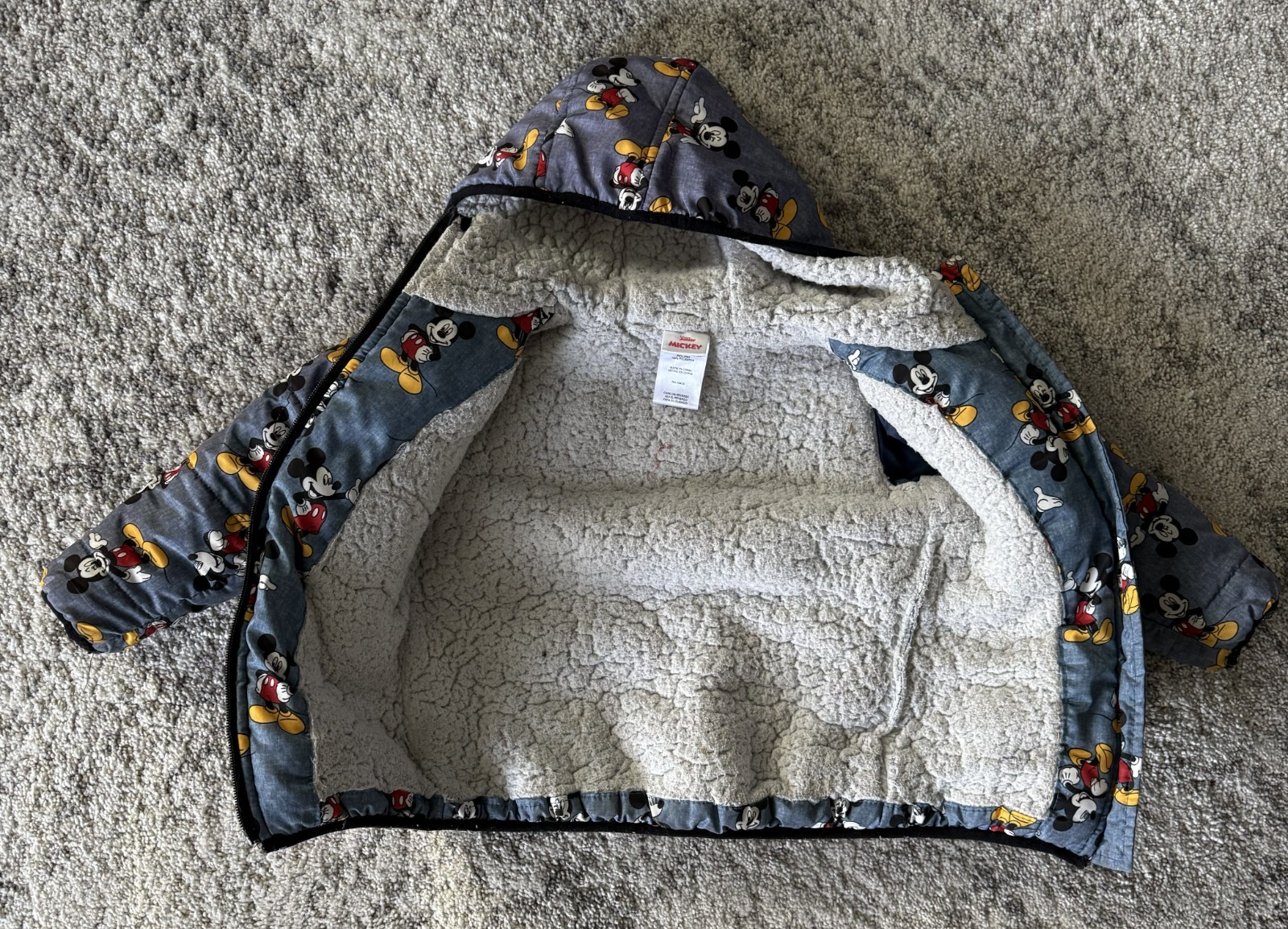 DISNEY JUNIOR MICKEY MOUSE PUFFER COAT Winter Jacket Hood Sherpa Lining SIZE 4T