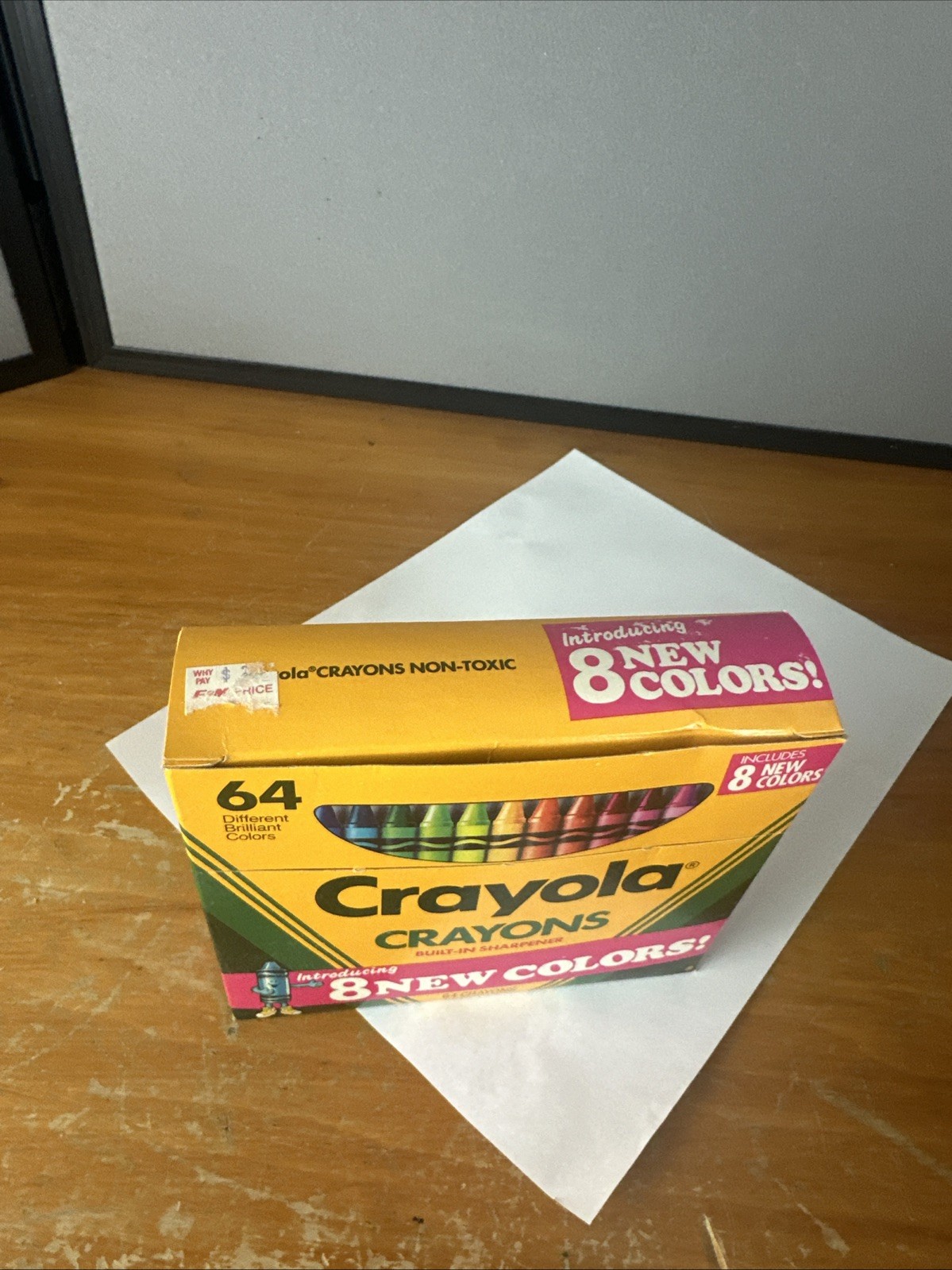 New Unused Vintage 1990 Crayola Crayons 64 Count Box 8 New Colors Teal Fuchsia