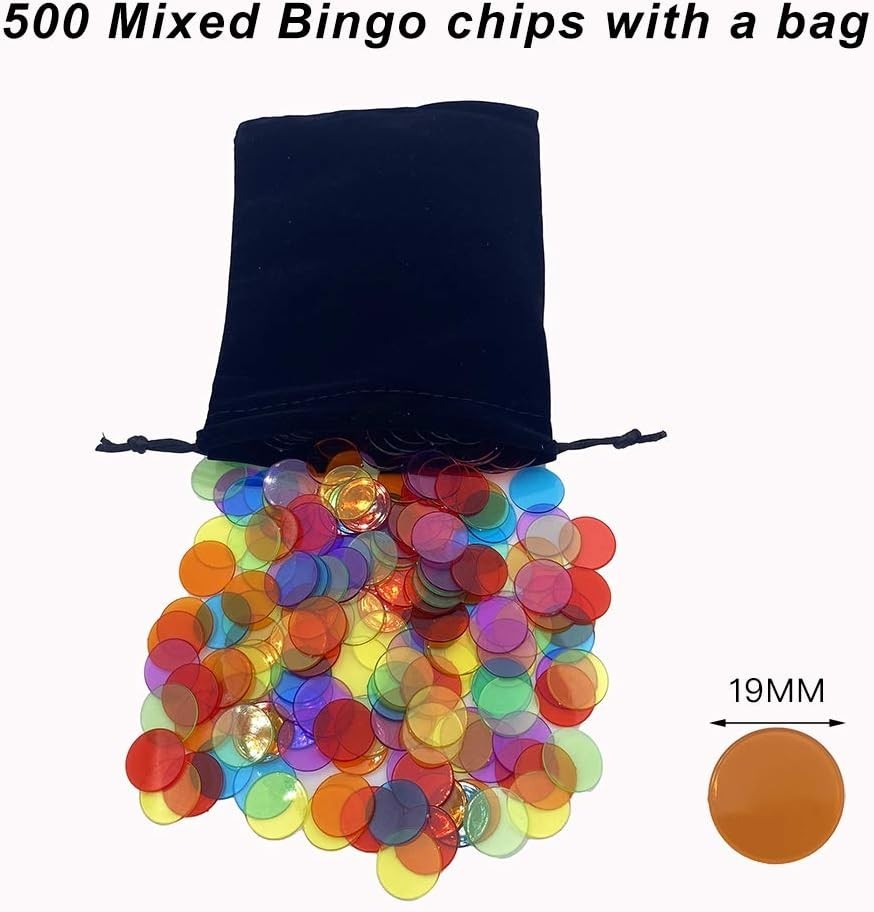 500 Pieces 3/4 inch Transparent 6 Color Bingo Counting Chips with Bag