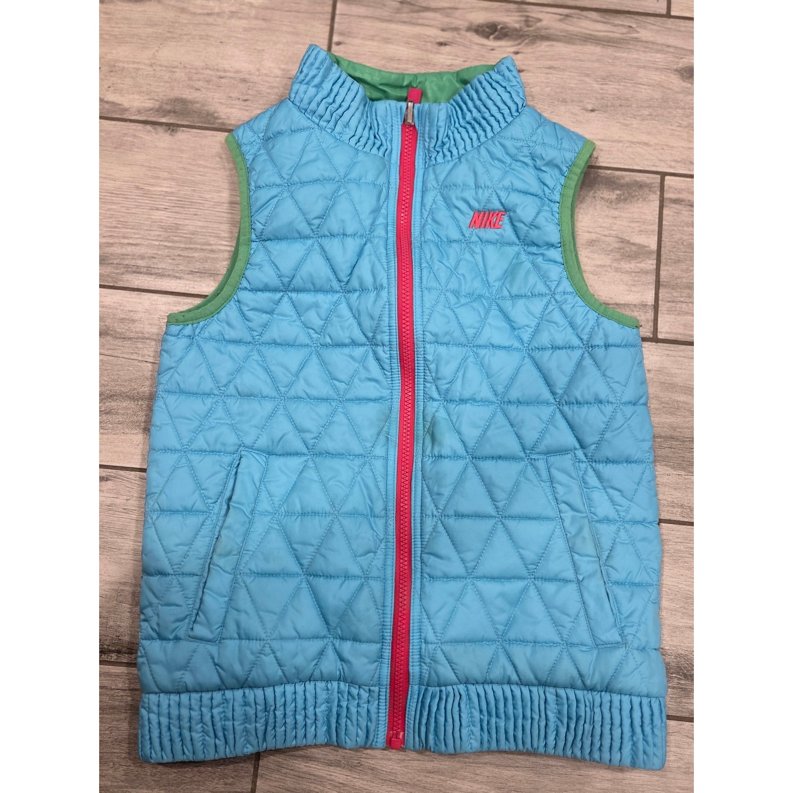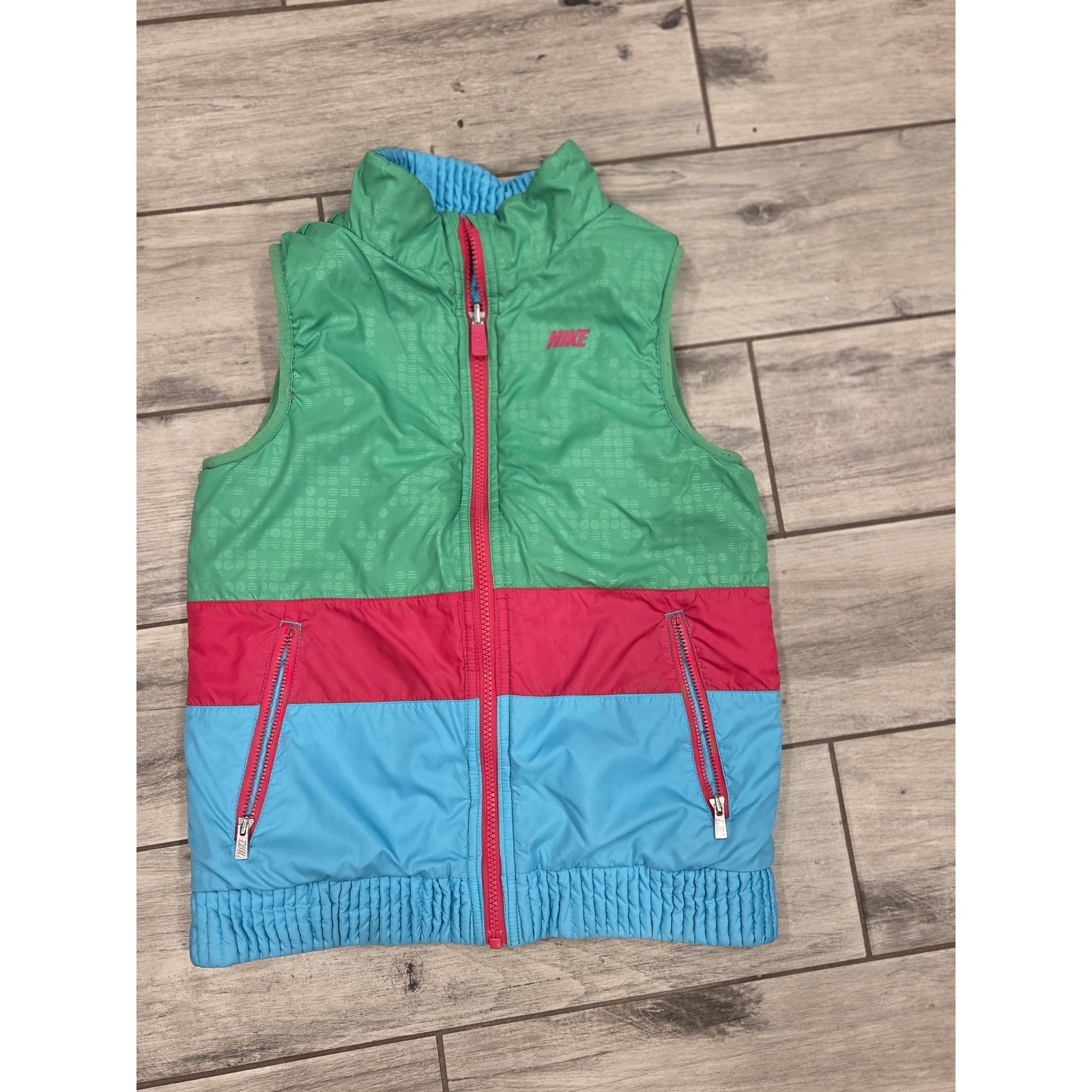 Kids Nike Puffer Vest Green Pink Blue Color Block Zip Up Athletic Size 6