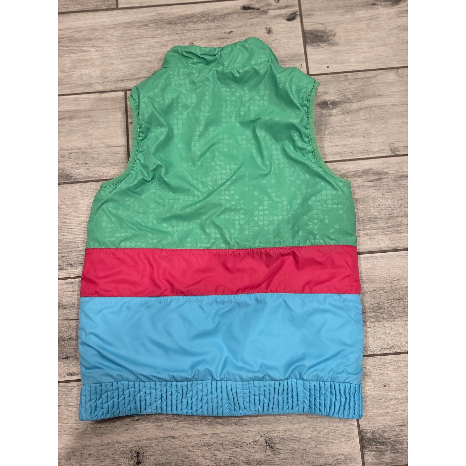 как выглядит Kids Nike Puffer Vest Green Pink Blue Color Block Zip Up Athletic Size 6 фото