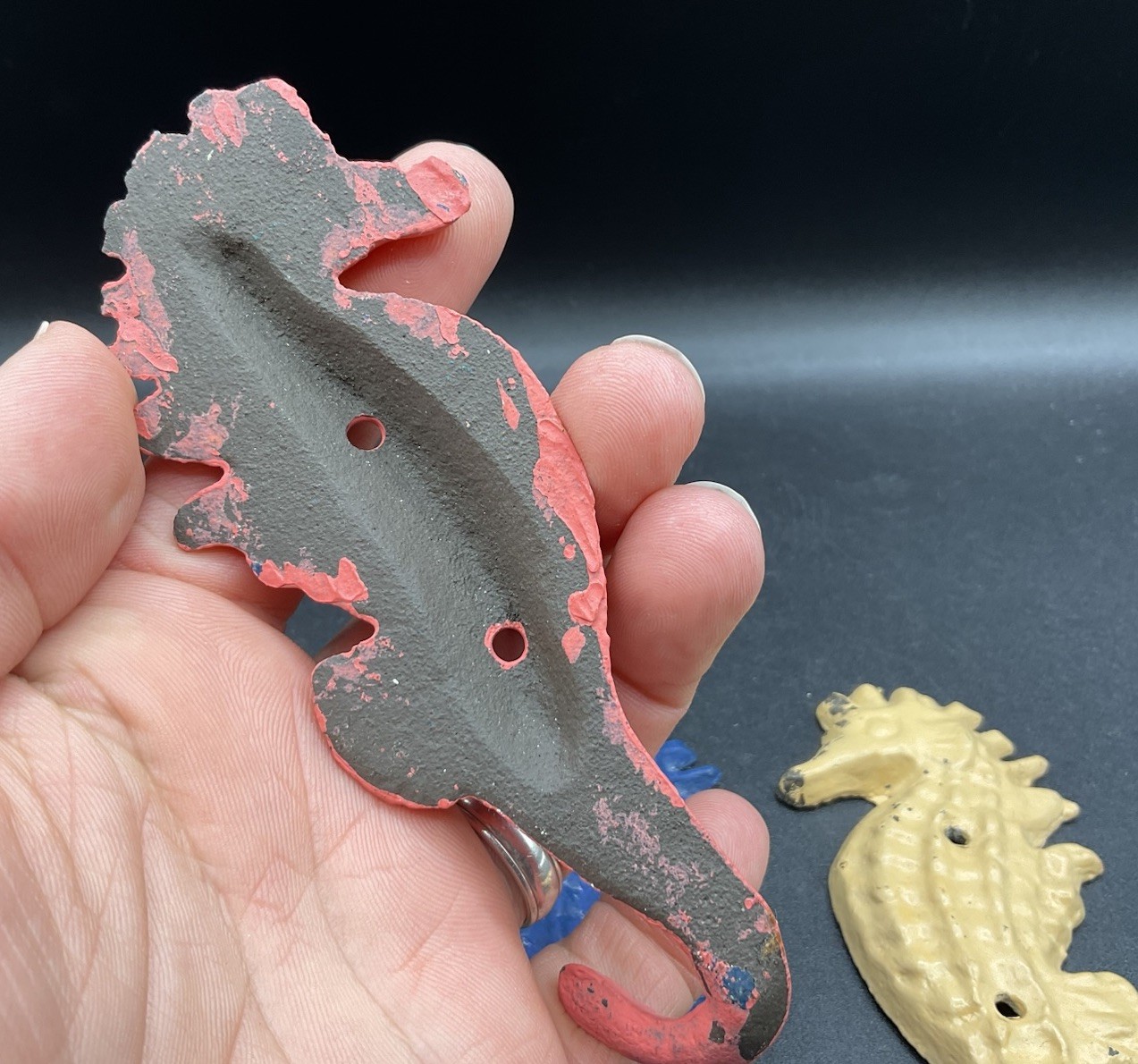 как выглядит Set of 4 Colorful Coastal Cast Iron Seahorse Decorative Wall Hooks 5 inch фото