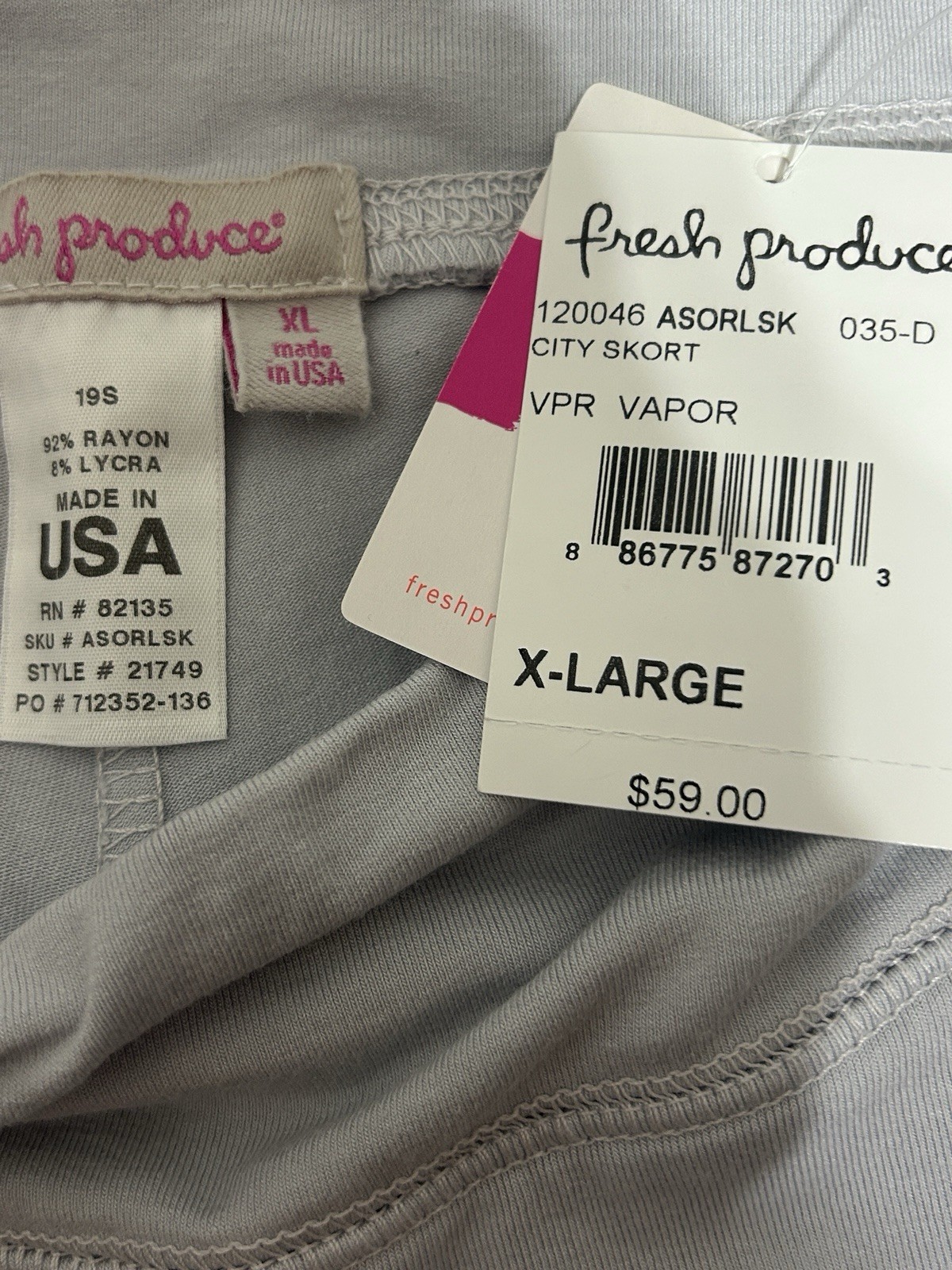 FRESH PRODUCE Vapor Gray Stretch Knit City Skort Skirt NWT 59 Size XL