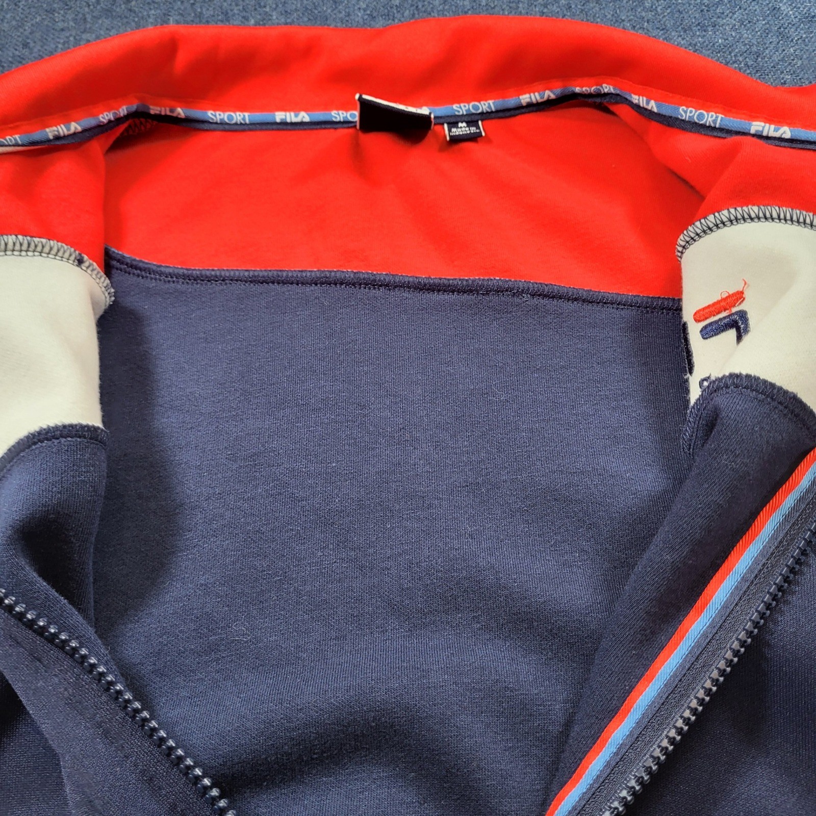 Vintage Fila Sport Mens Full Zip Track Jacket Navy Blue Red White Med 90s