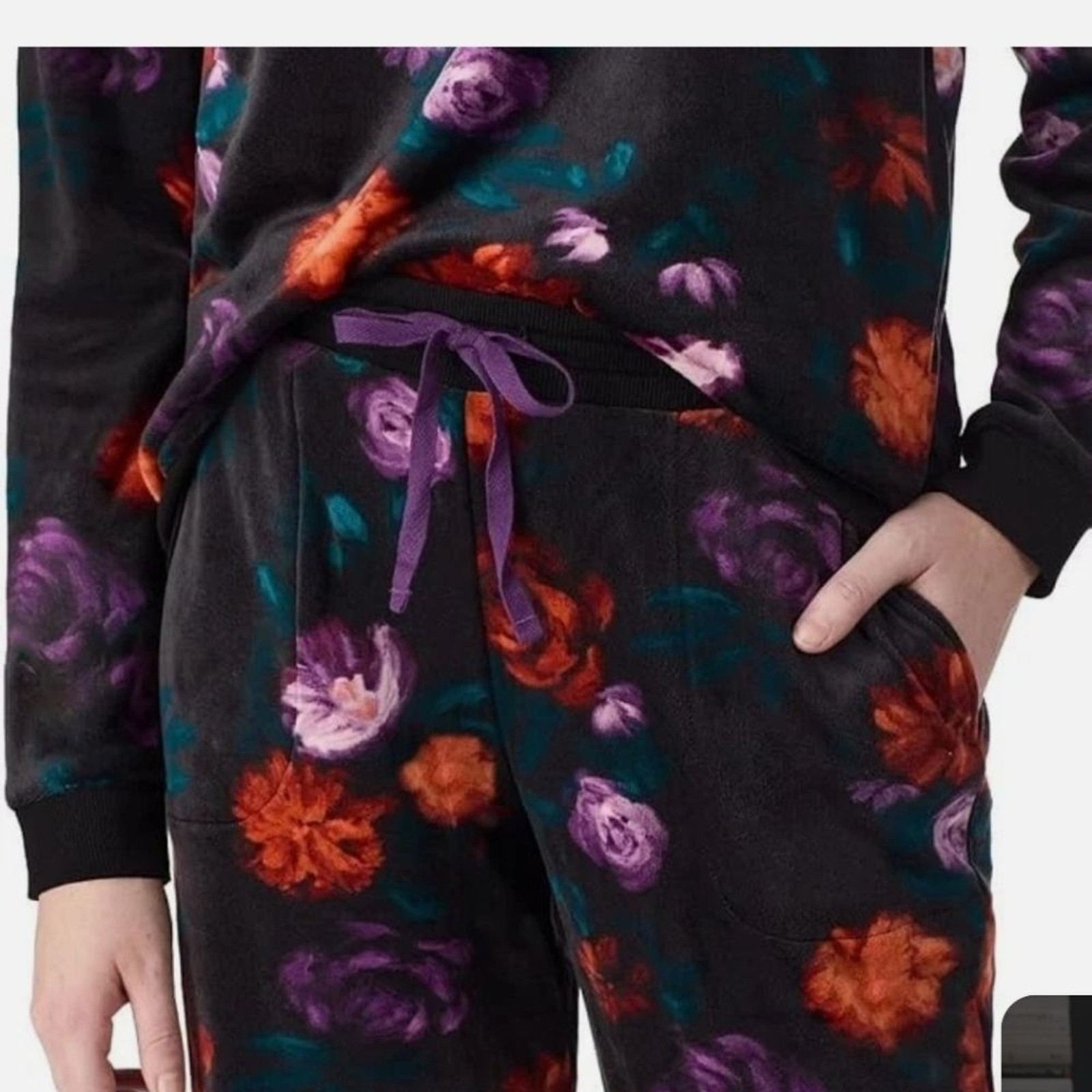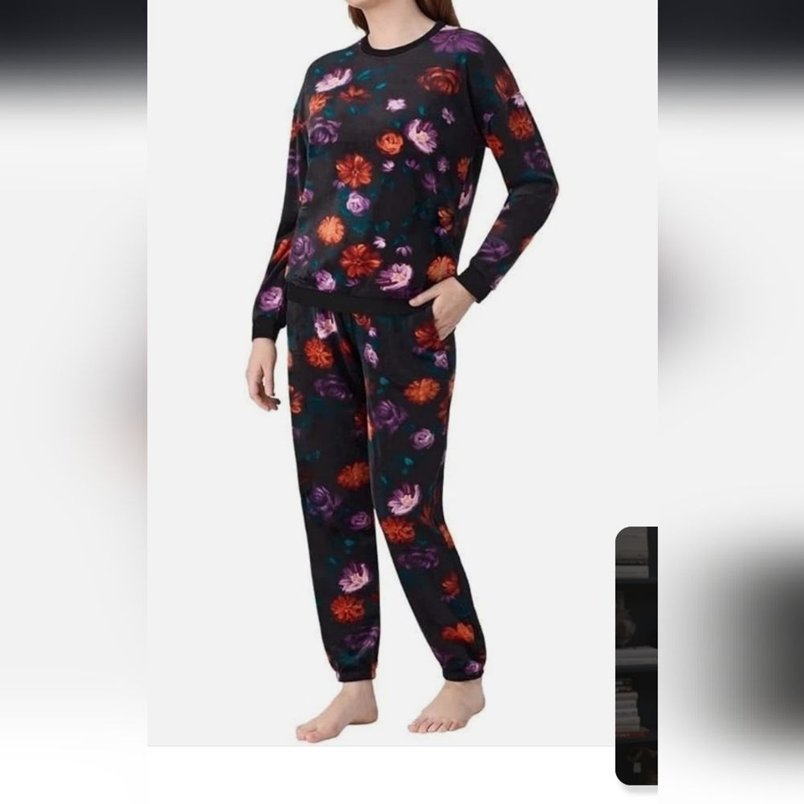 как выглядит NWT Room Service Womens 2 Piece Pajama Set Black Floral Nwt фото