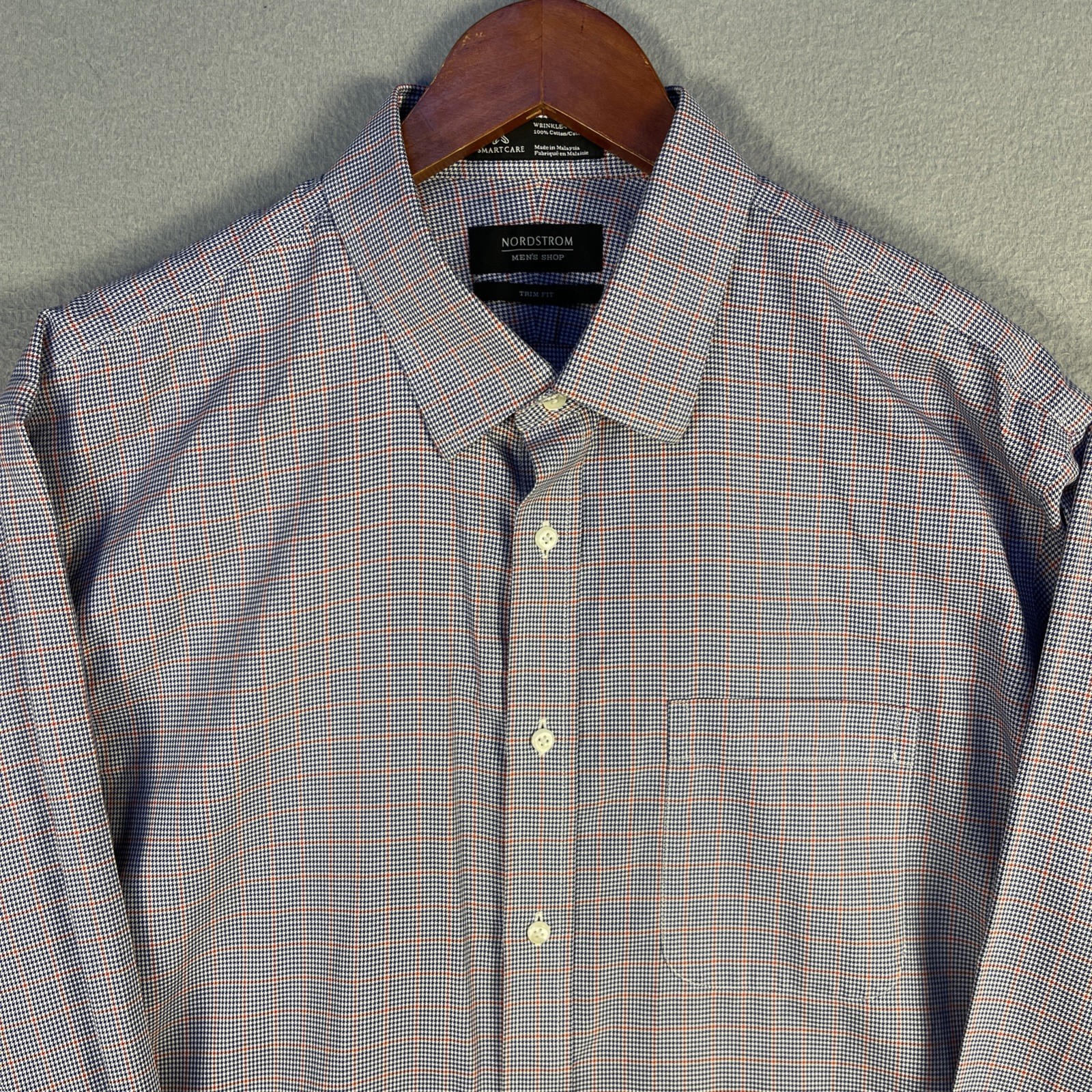 как выглядит Nordstroms Dress Shirt 16.5 34-35 Plaid Pocket Trim Fit Wrinkle-Free Business фото