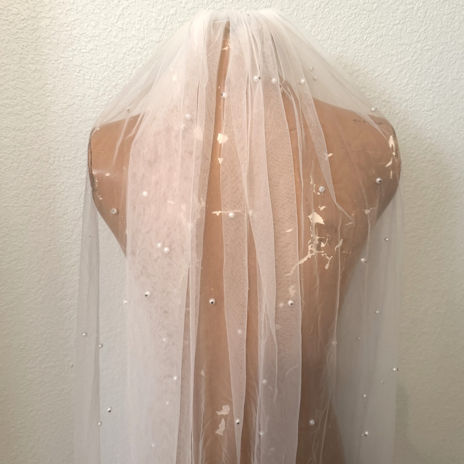 Wedding Veil White Pearl Beads Tulle Comb Attachment Cosplay Costume