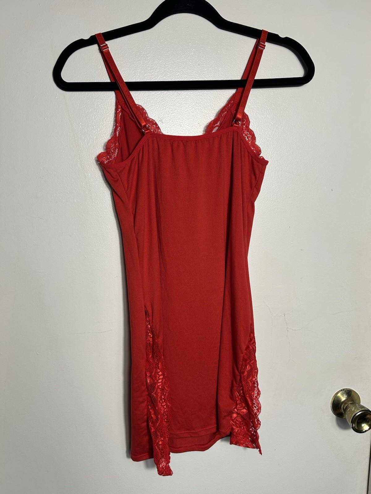 как выглядит Coquette Red Mini Slip Dress Lace Hem Bow Detail Y2K Style Lingerie Size L фото