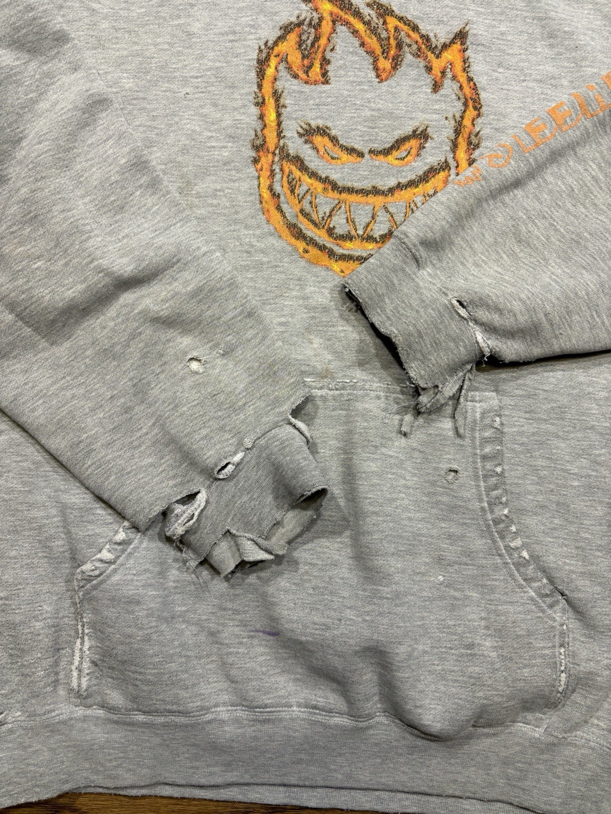 как выглядит Vintage Y2K Spitfire Wheels Flame Devil Grey Skate Hoodie Distressed Men Medium фото