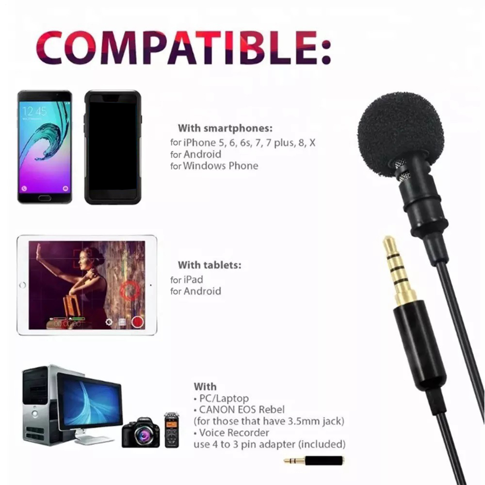 3.5mm Clip On Lavalier Lapel Microphone Hands Free Wired Condenser Mini Mic New