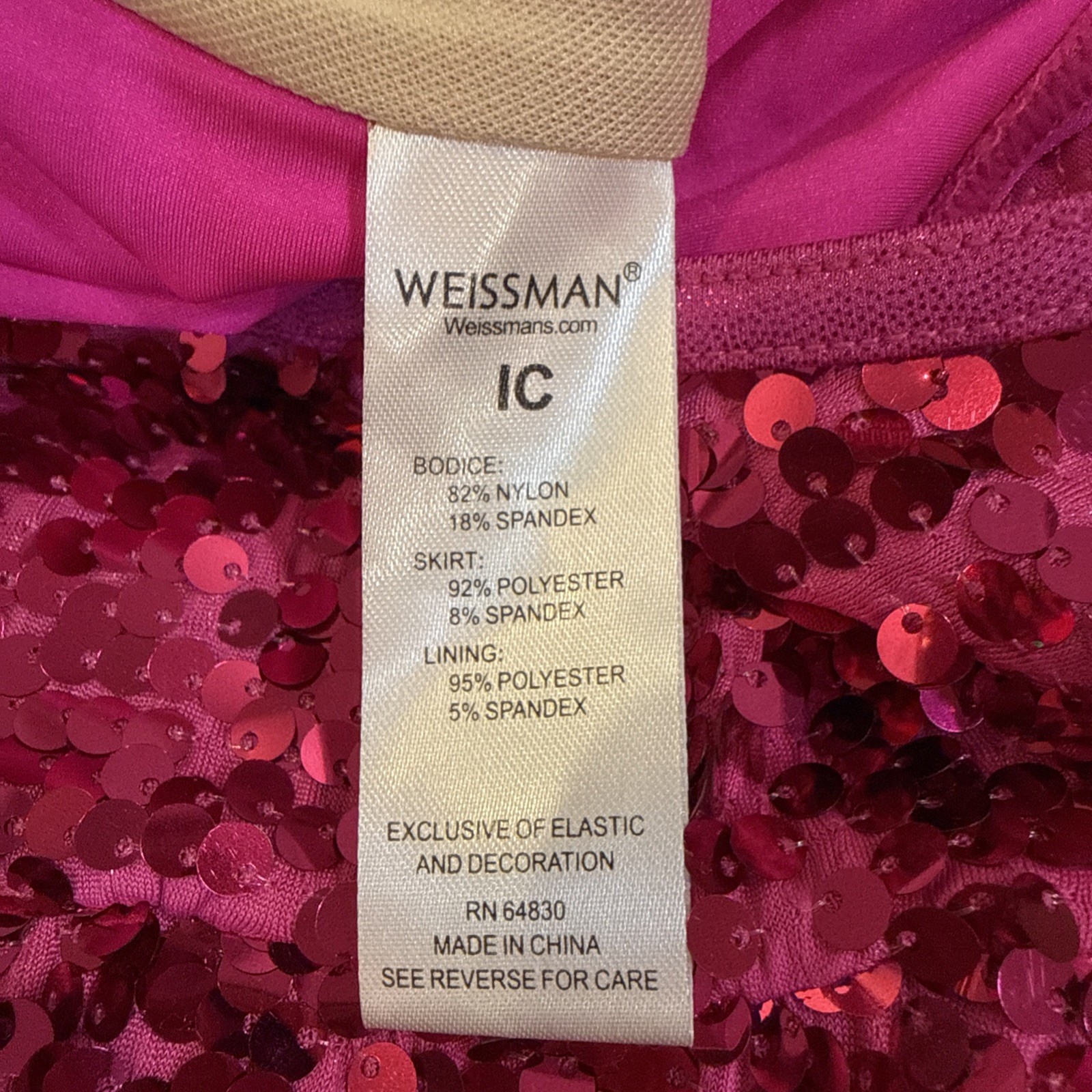 Weissman Dance Costume 16343 Intermediate Child IC Sequin Hot Pink Tap Jazz 7/8