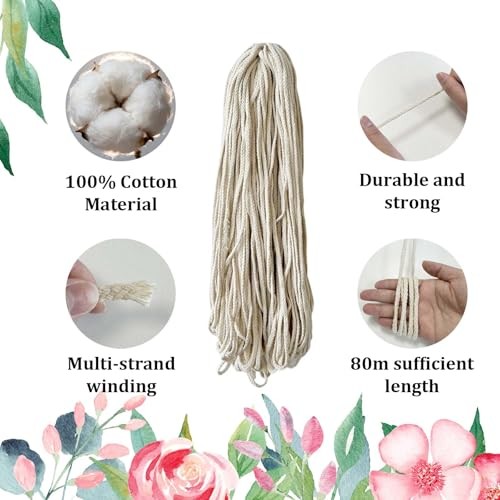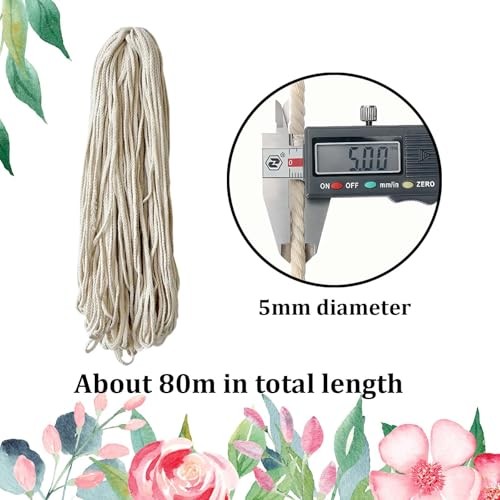 5mm x 295ft Macrame Cord Sky Blue Braided Cotton Rope, 8 Strand Natural Beige