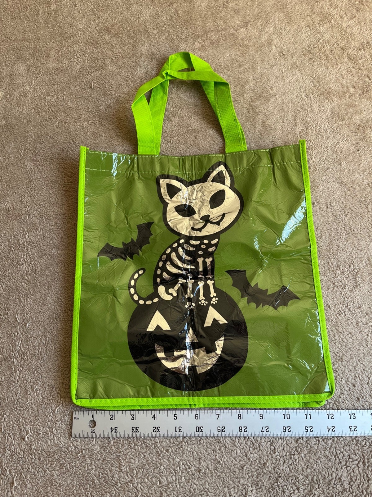 как выглядит Set Of 2 Halloween Trick Or Treat Tote Bags Skeleton Cat Dog Designs Reusable фото
