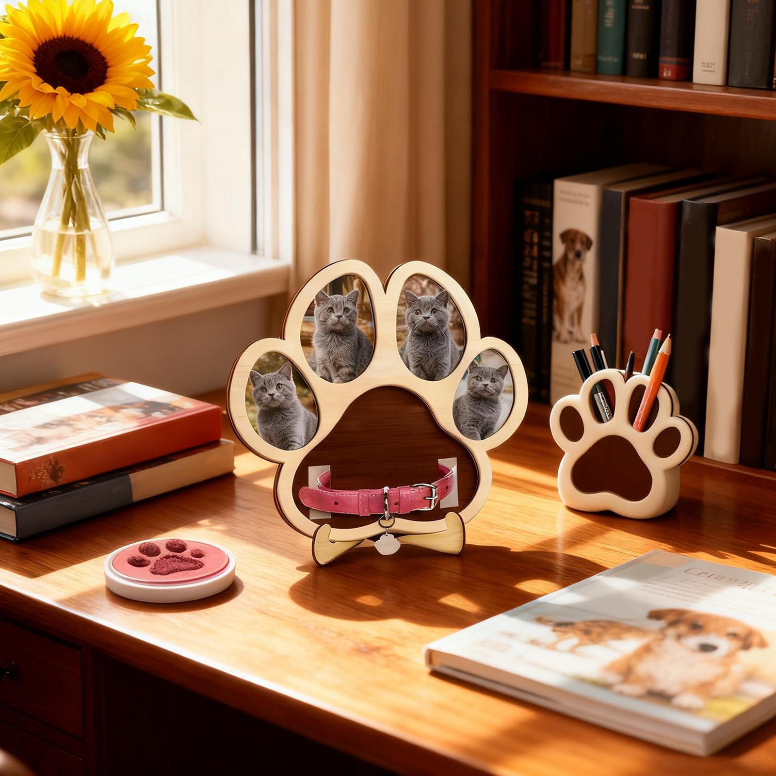 Dog Memorial Frame Cute Wooden Paw Shape Ornament Pet Photo Frame