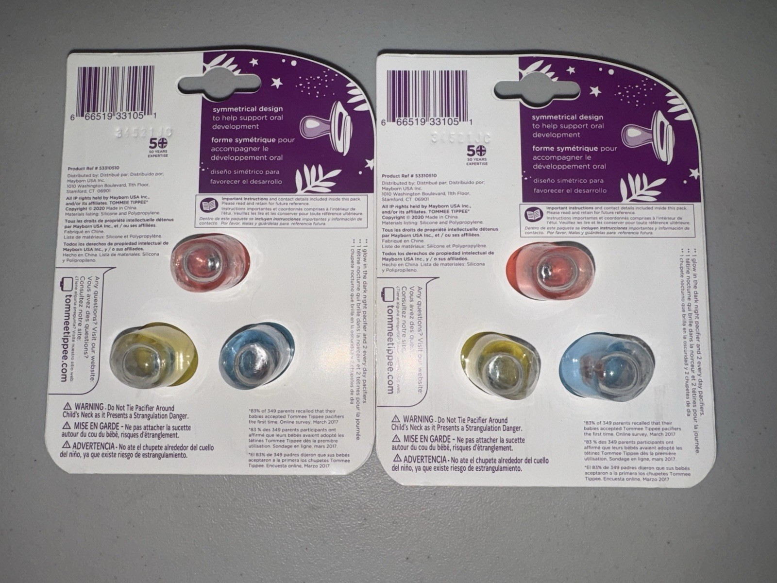 Tommee Tippee Day and Night Glow In The Dark Pacifiers 0-6 Months Lot Of 2