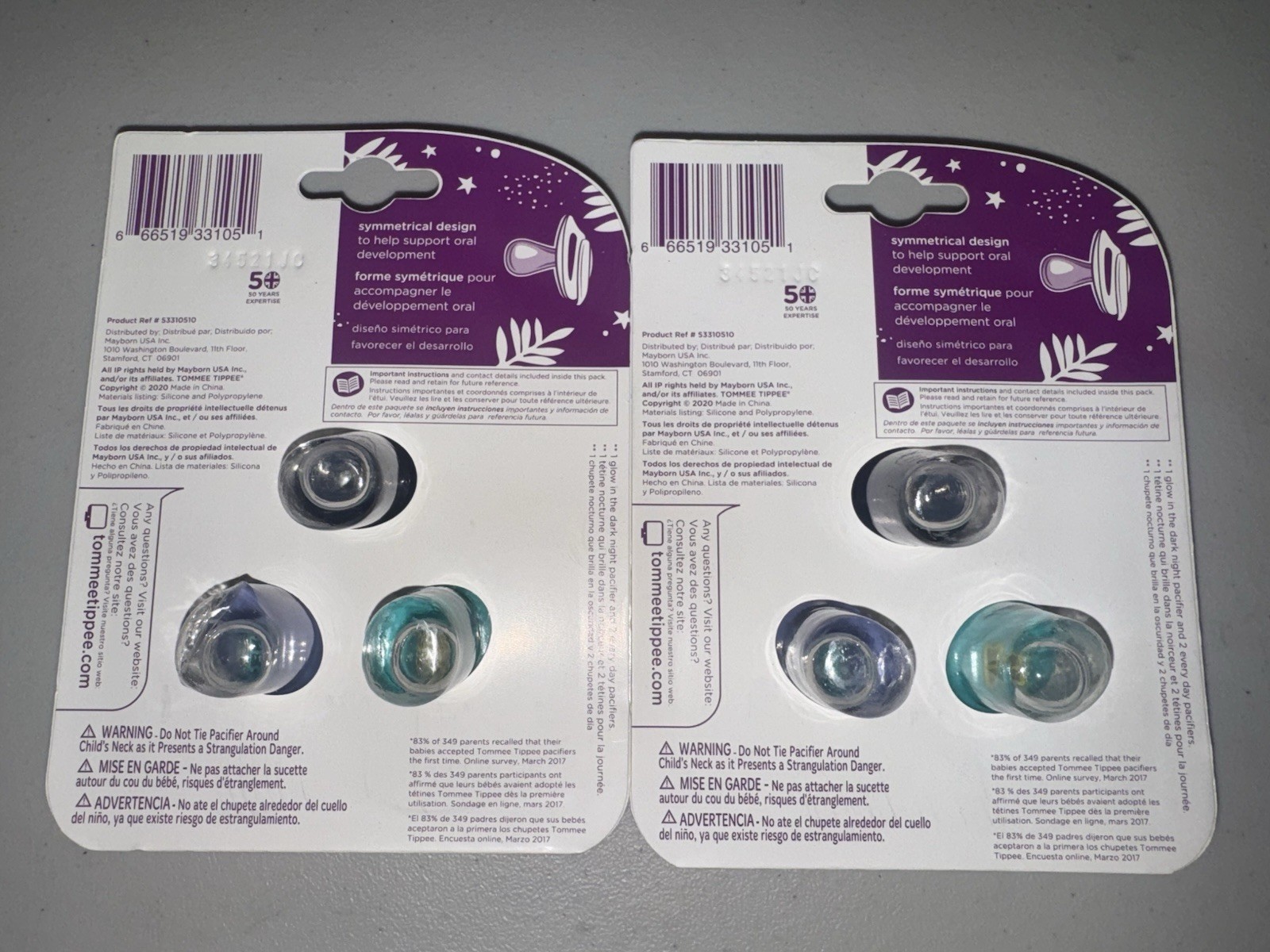 как выглядит Tommee Tippee Day and Night Glow In The Dark Pacifiers 0-6 Months Lot Of 2 фото
