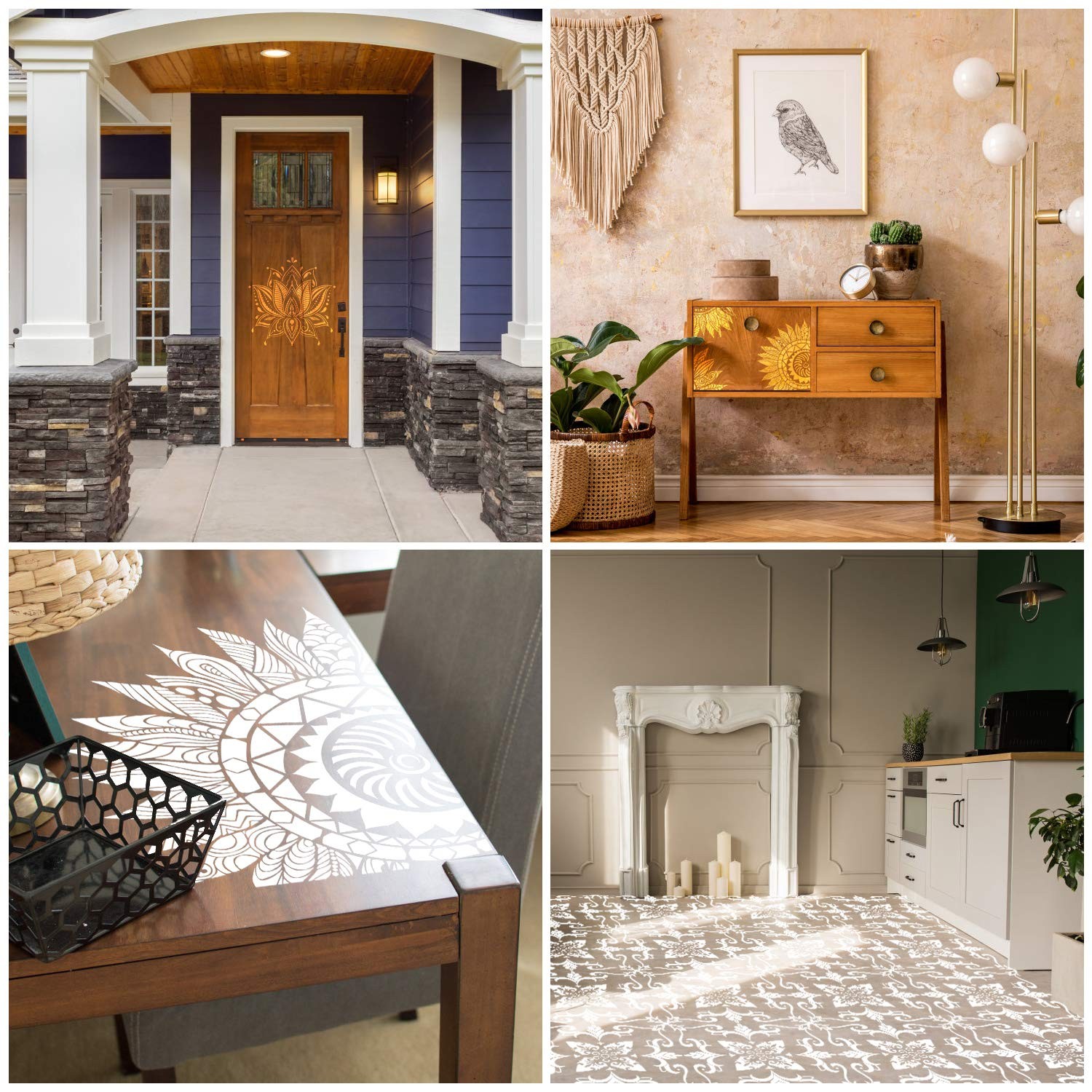 как выглядит 9 Pack 12x12 Inch Large Reusable Stencil Mandala Laser Cut Style-1 фото
