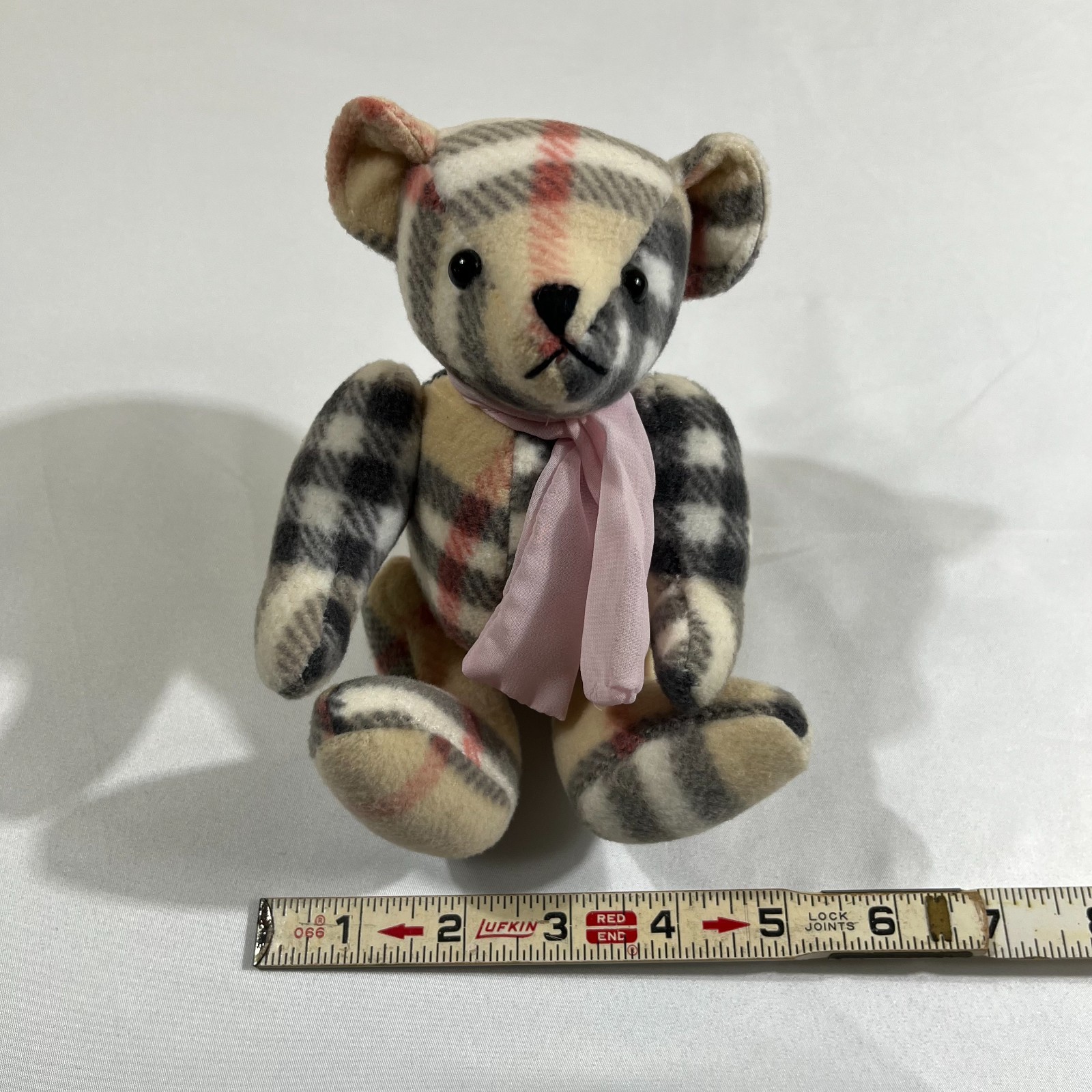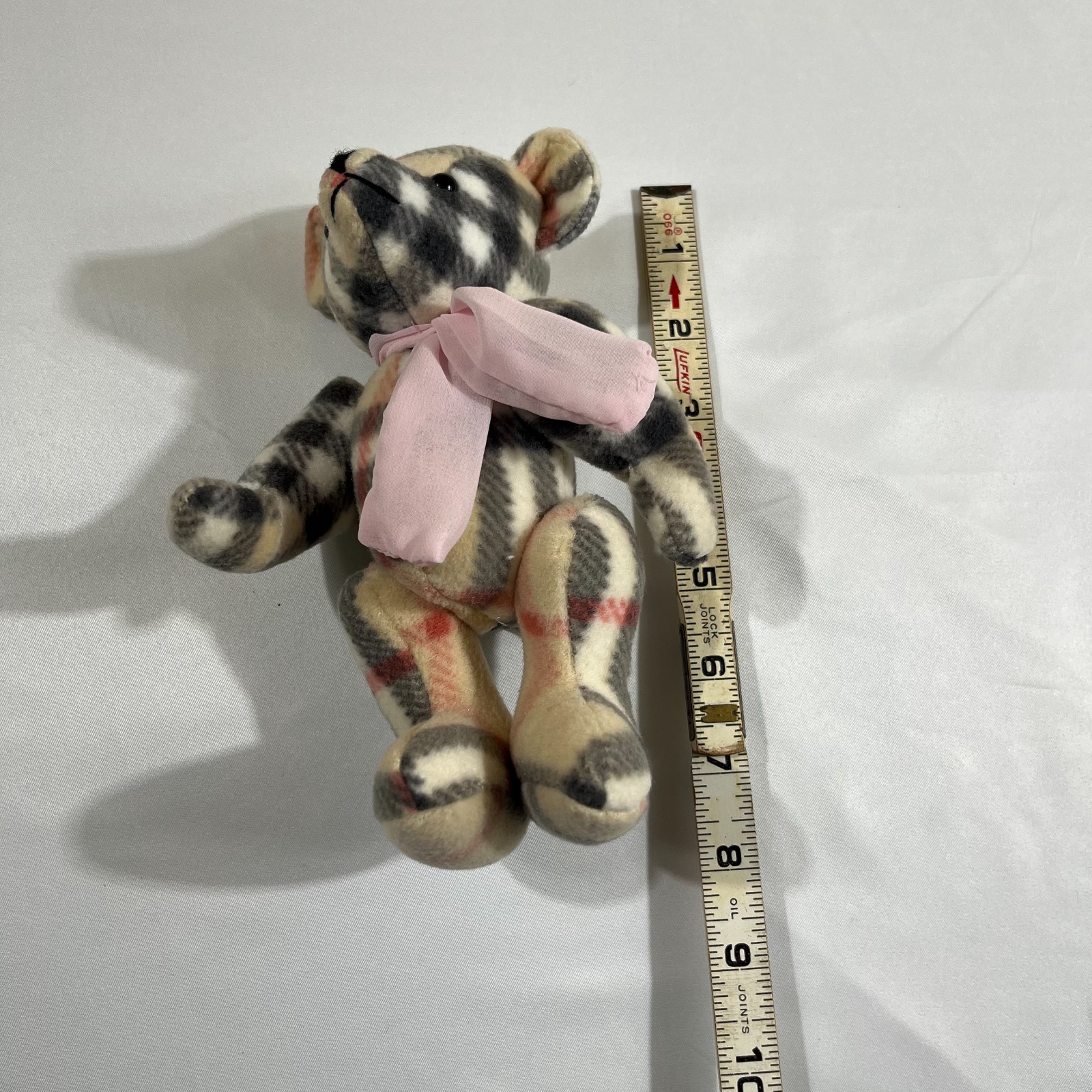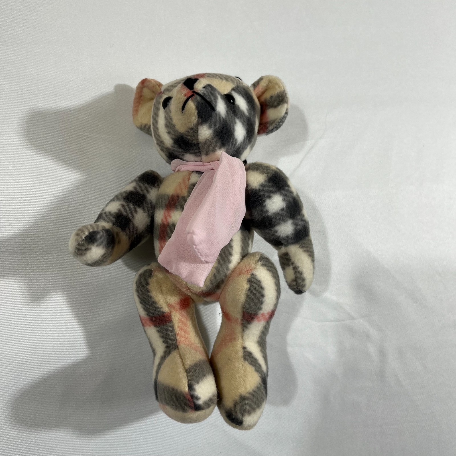 • Burberry Mini Teddy Bear Plush Tan Nova Check Pink Scarf 7 in Collectible Toy
