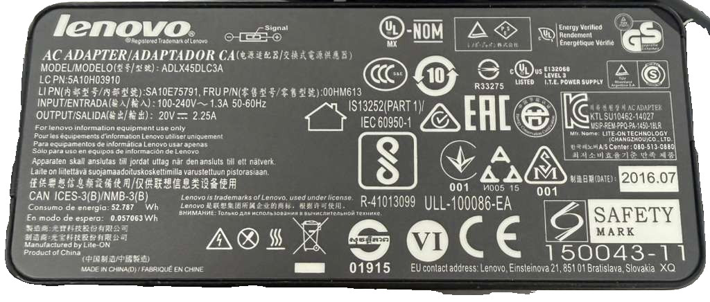 Совместимая модель: Lenovo ADLX45DLC3A