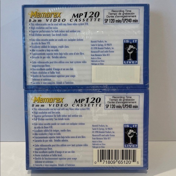 Set of 2 Memorex 8mm Camcorder Video Cassette MP 120 Sealed New