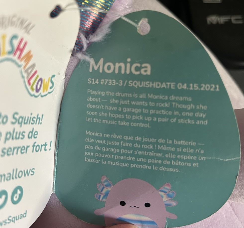 как выглядит Squishmallows Monica The Purple Axolotl 14 Plush KellyToys 2021 фото