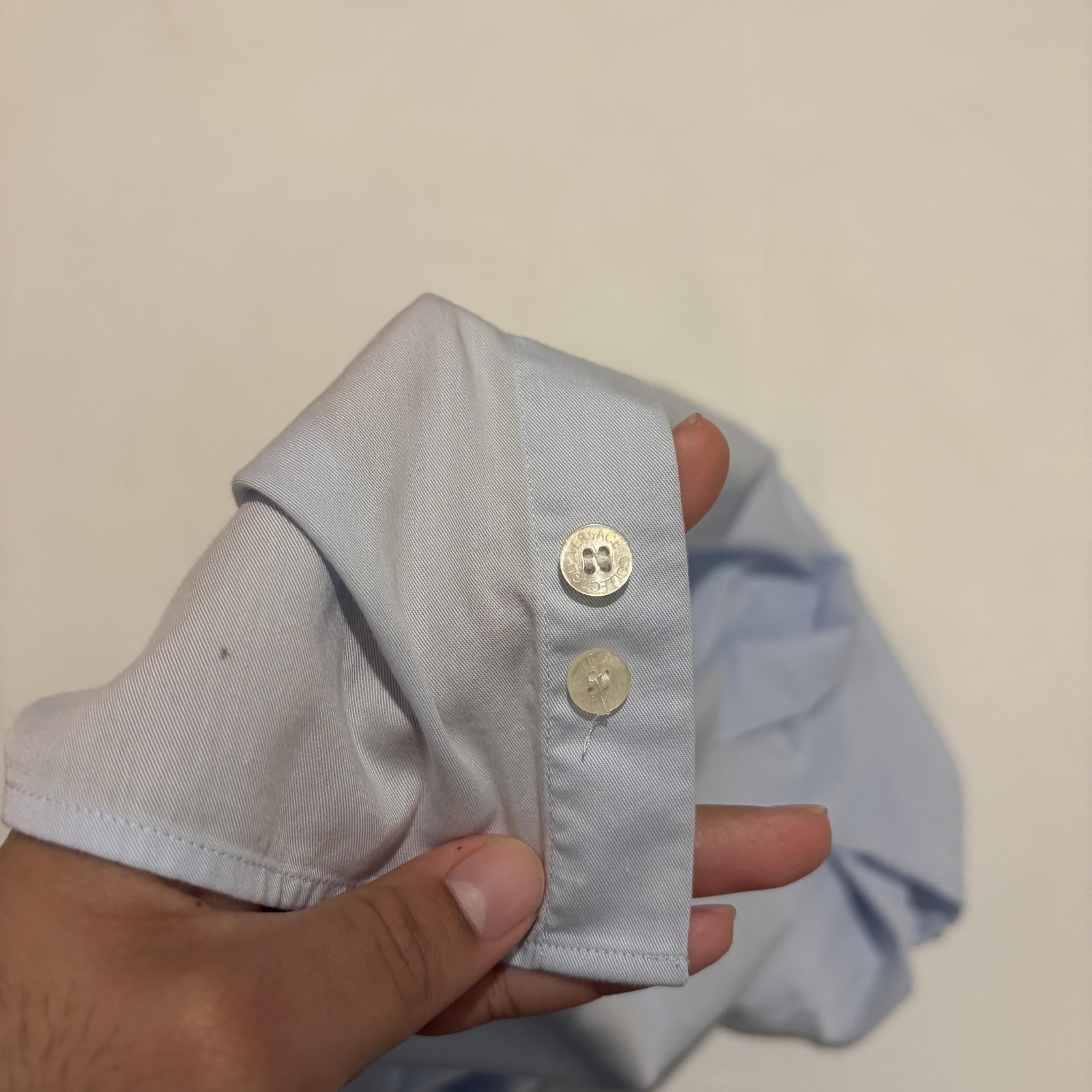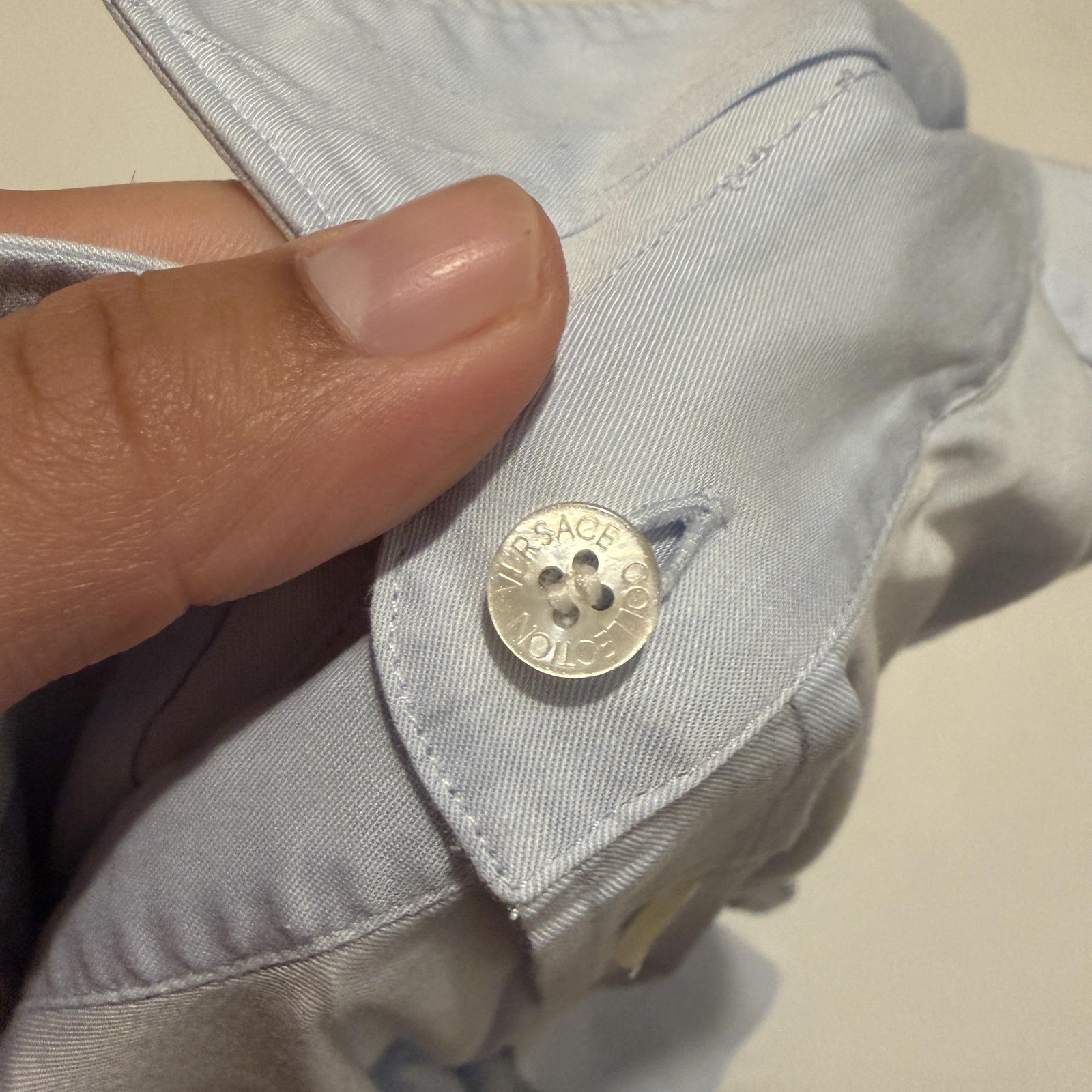 как выглядит Versace Collection Shirt Mens 17 Blue Solid Dress Button Front Long Sleeve фото