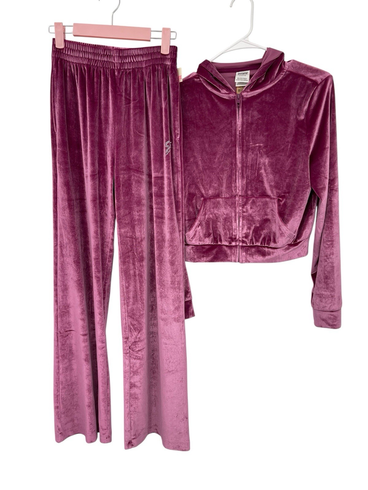 NWT Victoria s Secret Velour Shine Tracksuit Crop Hoodie Pants Pink Size S XS