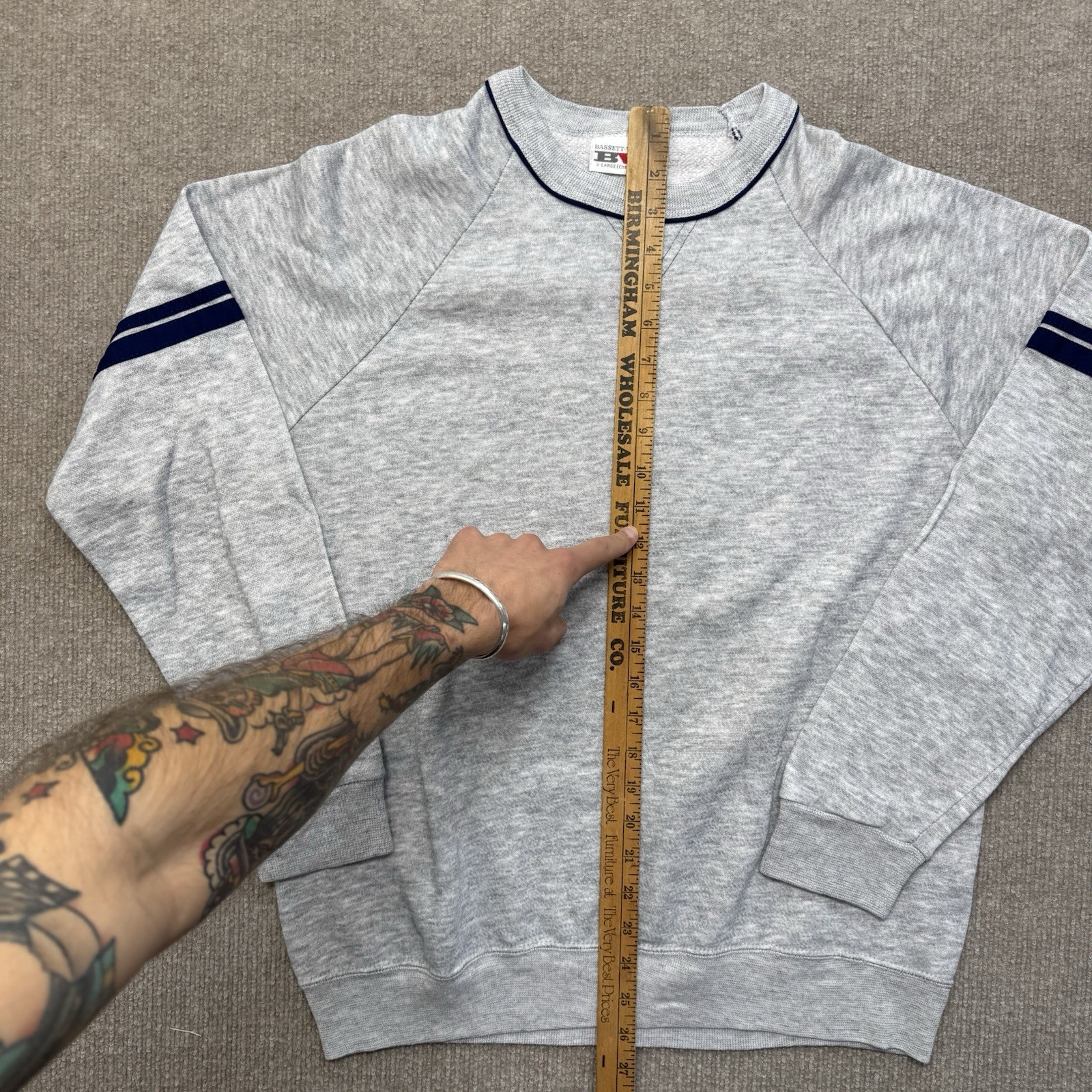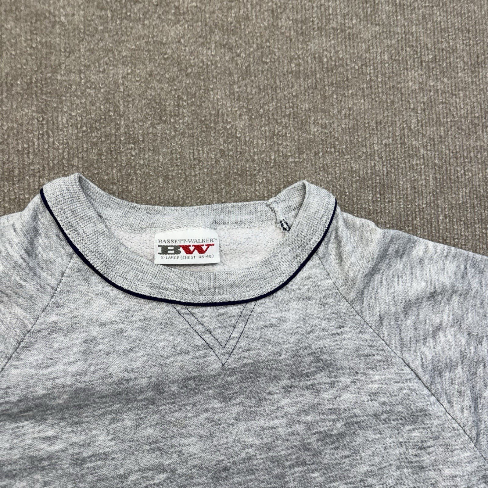 как выглядит Bassett Walker Sweatshirt Mens XL Vintage 80s USA Made Gray Raglan Striped фото