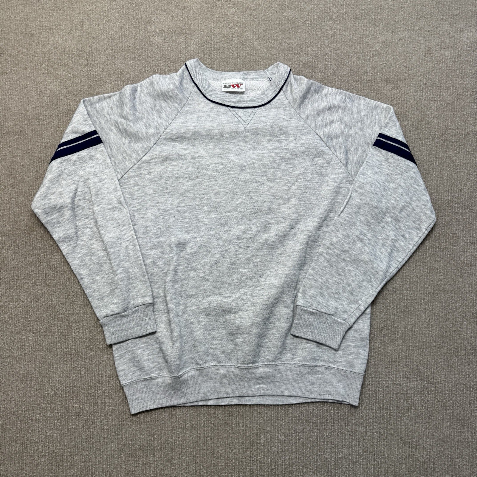 Bassett Walker Sweatshirt Mens XL Vintage 80s USA Made Gray Raglan Striped
