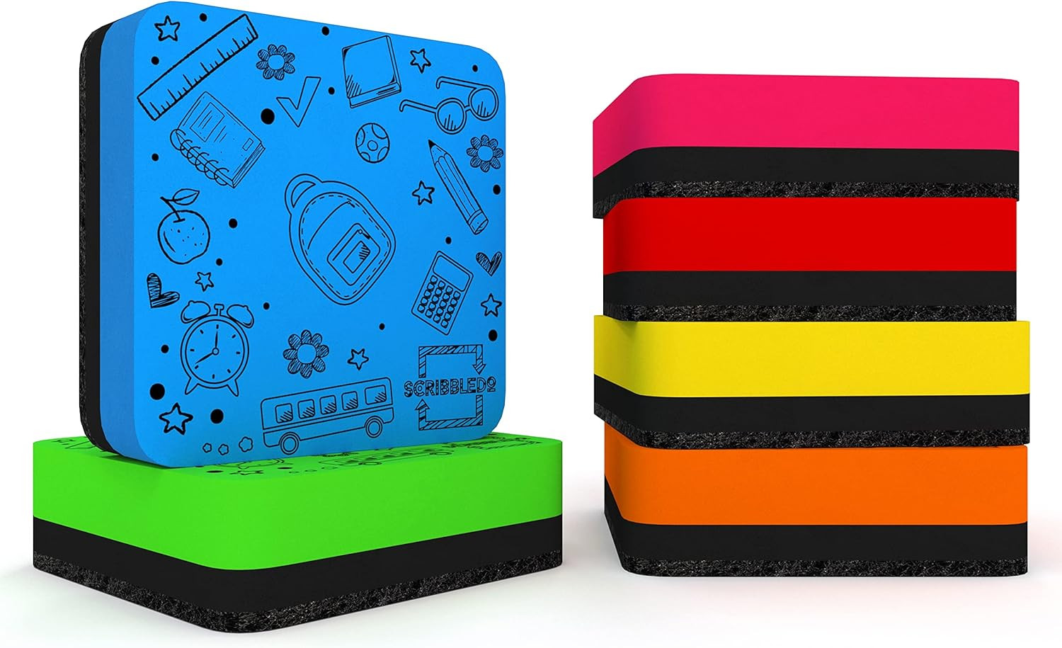 6 Pack Magnetic Dry Erase Erasers - Assorted Colors, Magnetic, Smudge Free for K