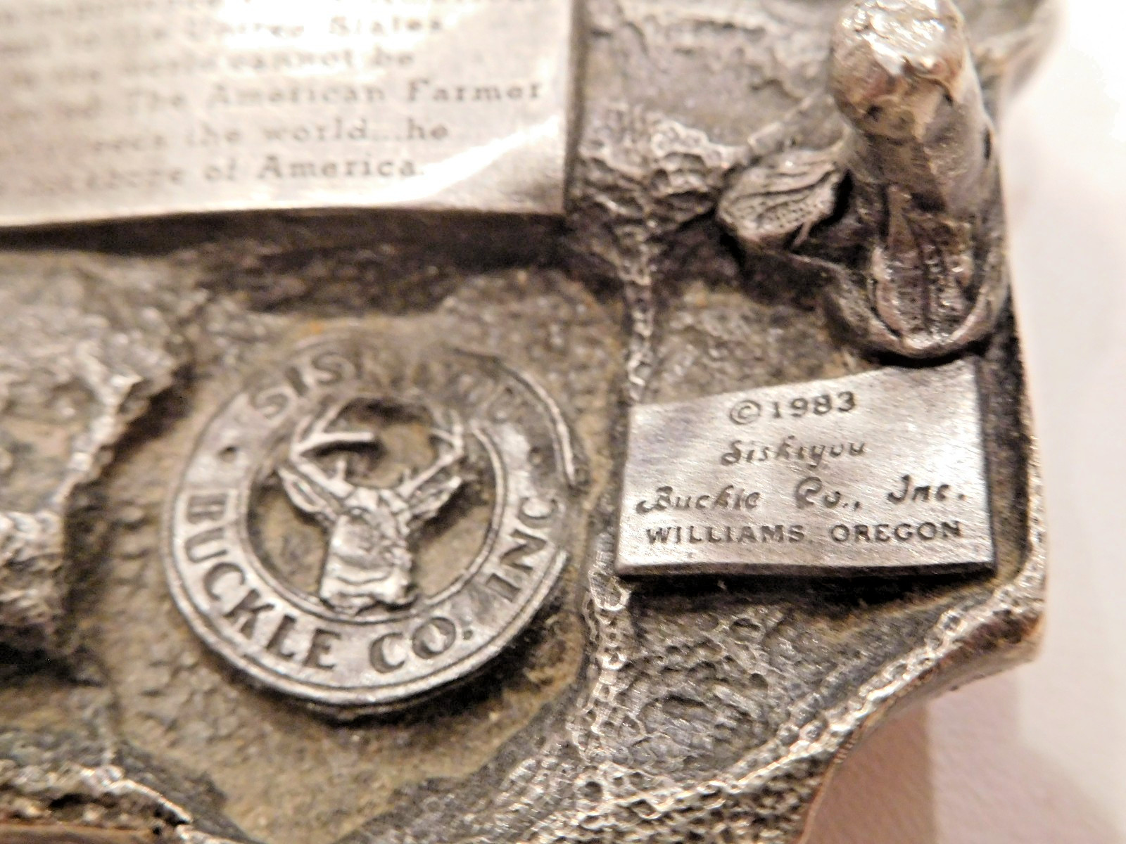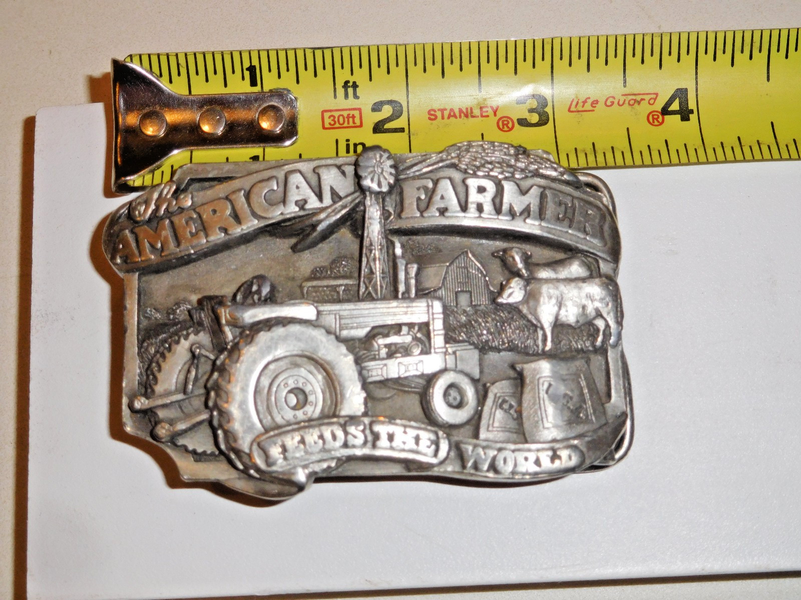 как выглядит Vtg "The American Farmer Feeds the World" Limited Ed 1983 Pewter Belt Buckle USA фото