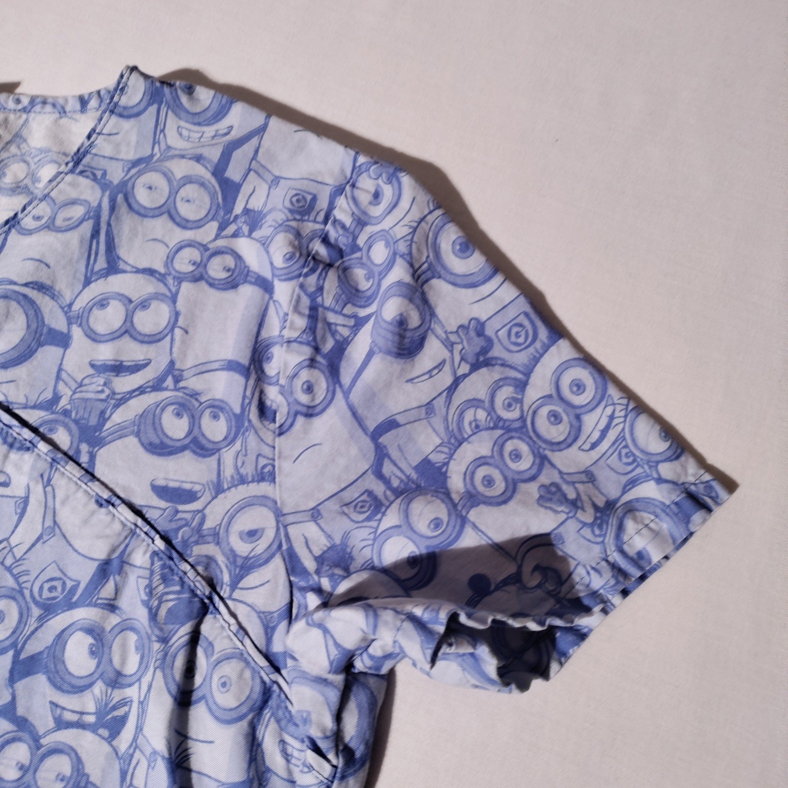 Despicable Me Minions All Over Print Scrub Top V Neck Short Sleeve Size M