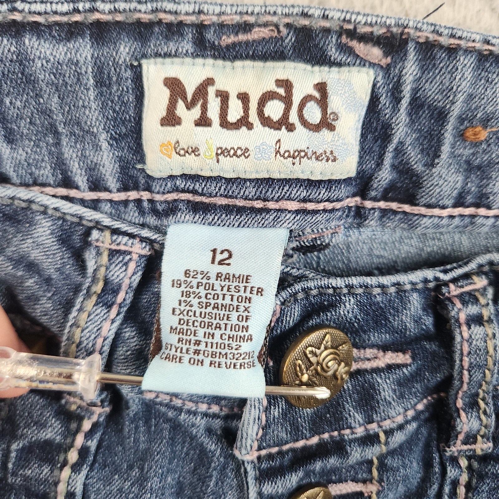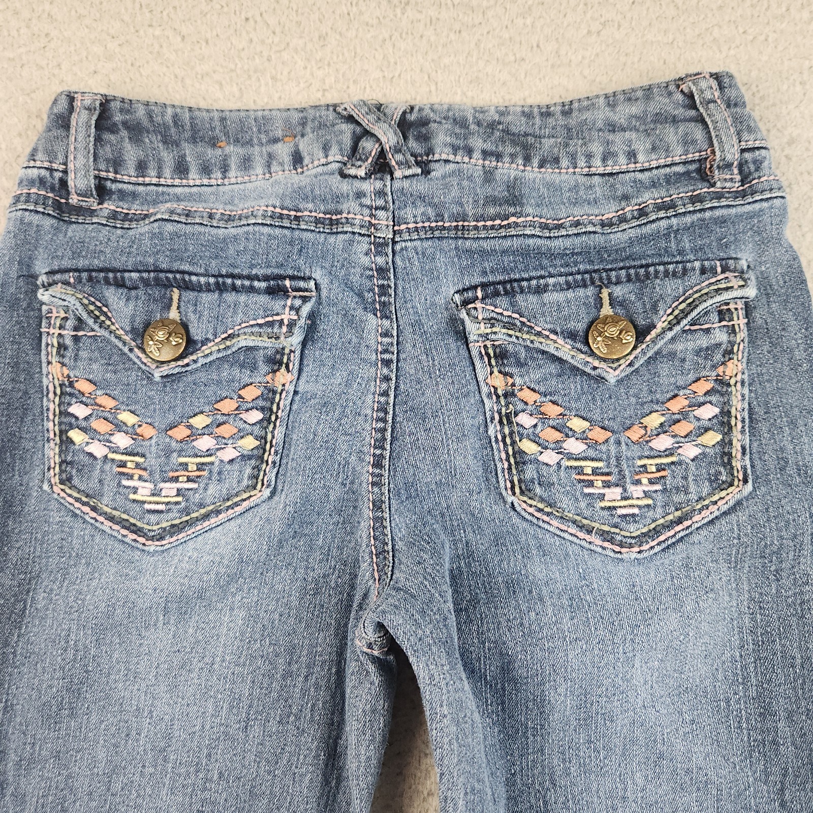 как выглядит Vintage Mudd Jeans Girls Size 12 Blue Bootcut Pink Stitch Flap Pockets Y2K CUTE фото