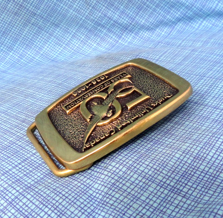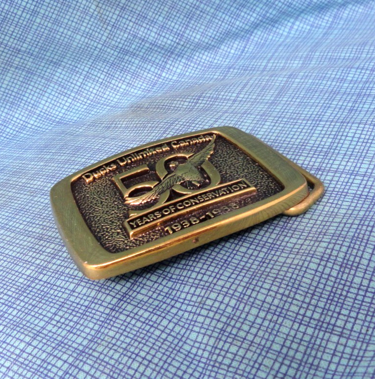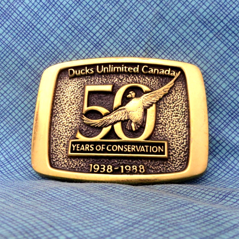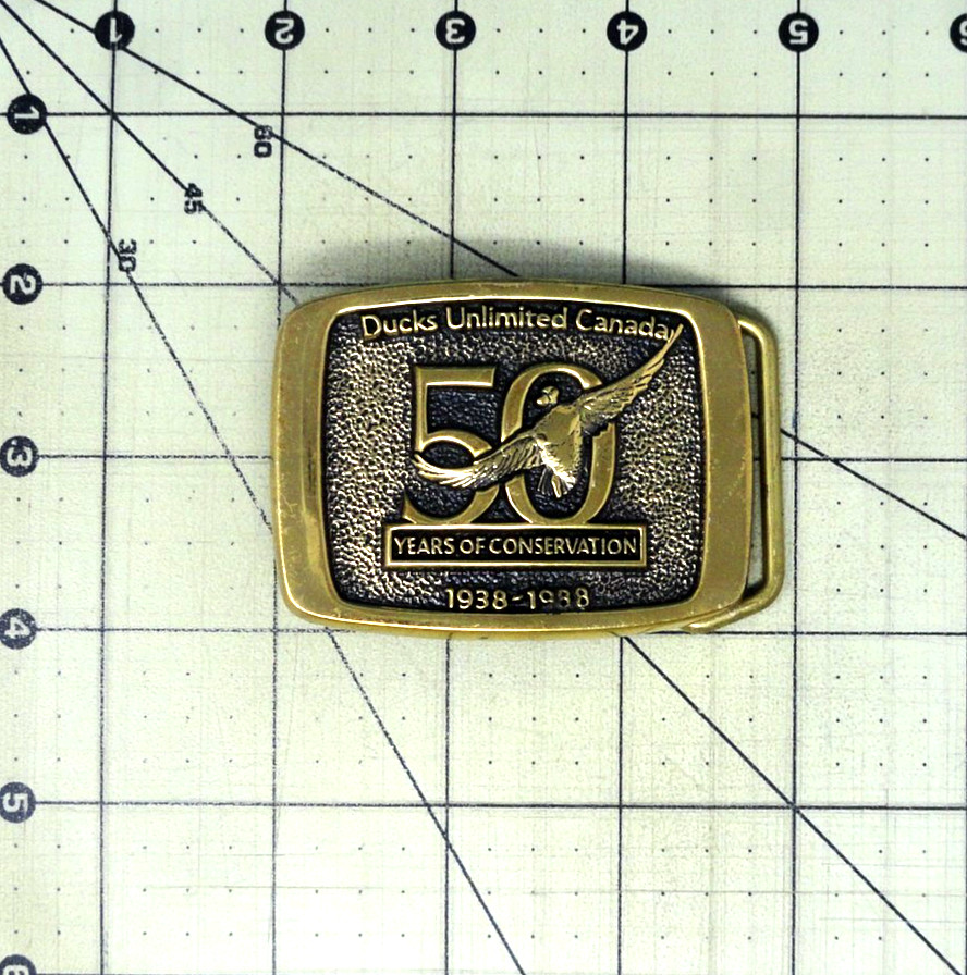 Ducks Unlimited Canada Dress Belt Buckle 50 Years 1938 1988 Brass Vtg BTS.BLT097