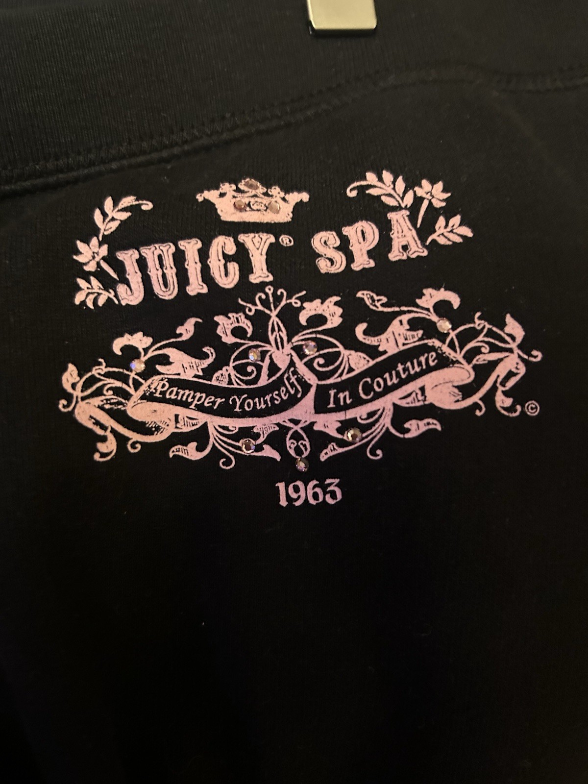 как выглядит NWT Y2K VINTAGE 2005 JUICY COUTURE BLACK COTTON TRACKSUIT PANTS PINK JUICY SPA M фото