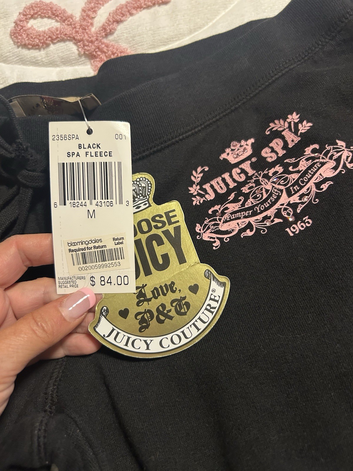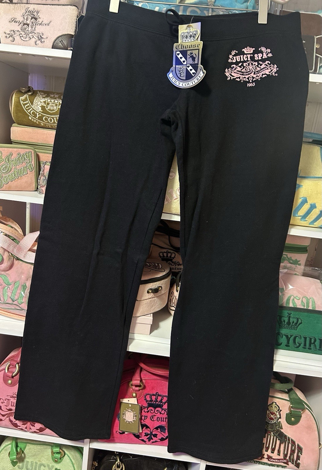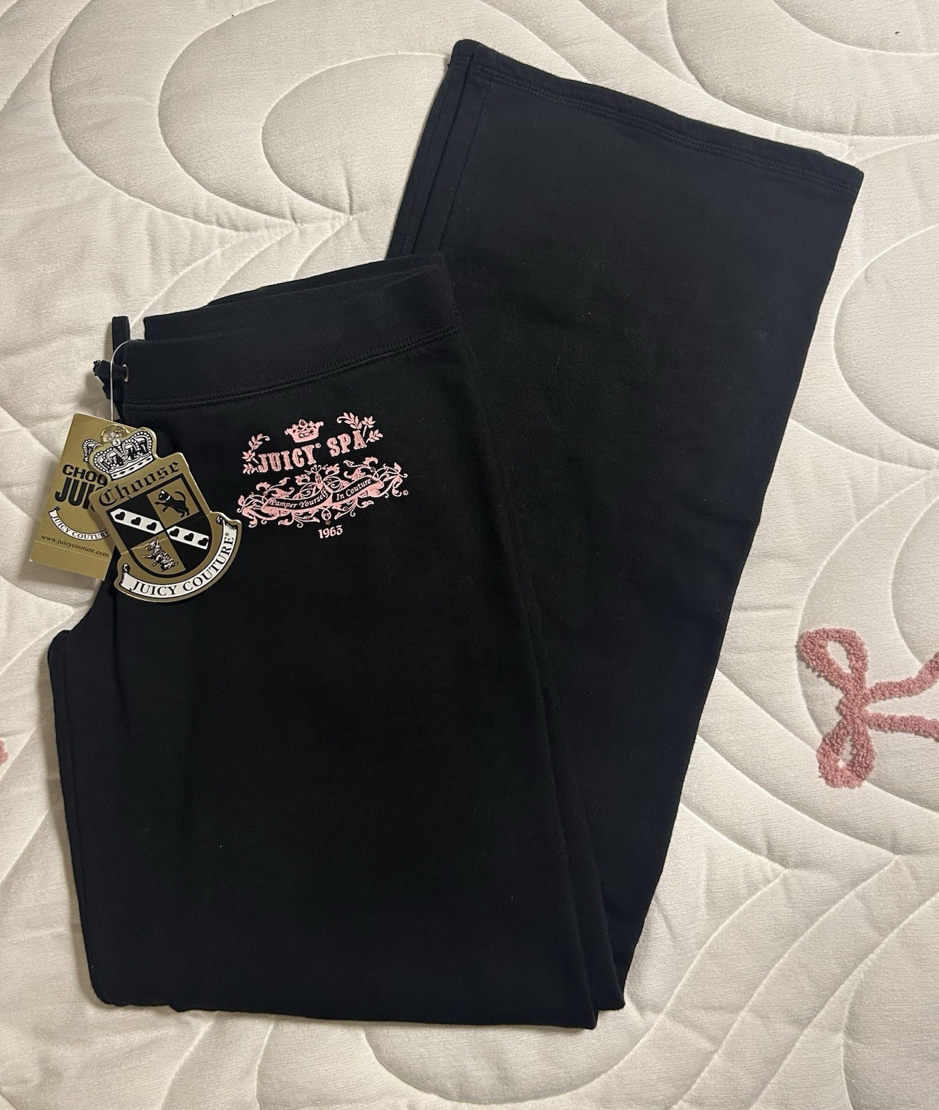 NWT Y2K VINTAGE 2005 JUICY COUTURE BLACK COTTON TRACKSUIT PANTS PINK JUICY SPA M