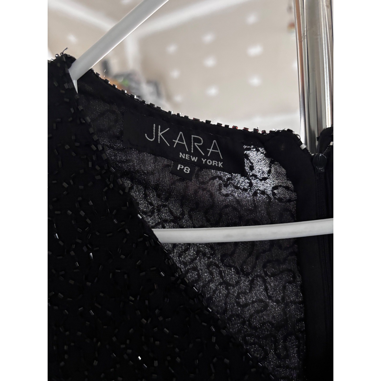 JKara New York Black Beaded Lace Evening Gown Dress Petite Formal Mother Bride