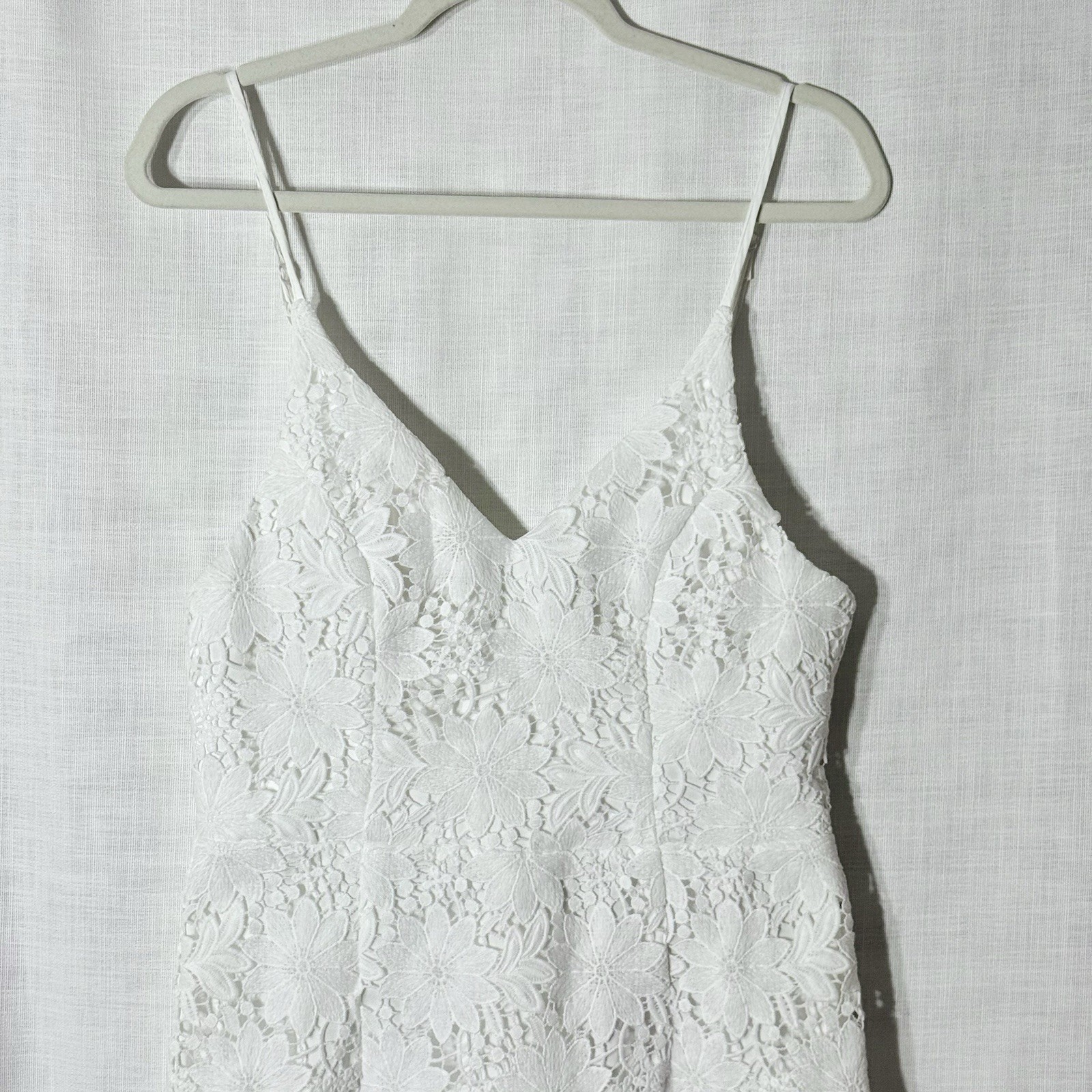 как выглядит Minuet White Floral Lace Bridal Midi Slip Dress L Romantic Coquette Cottage фото