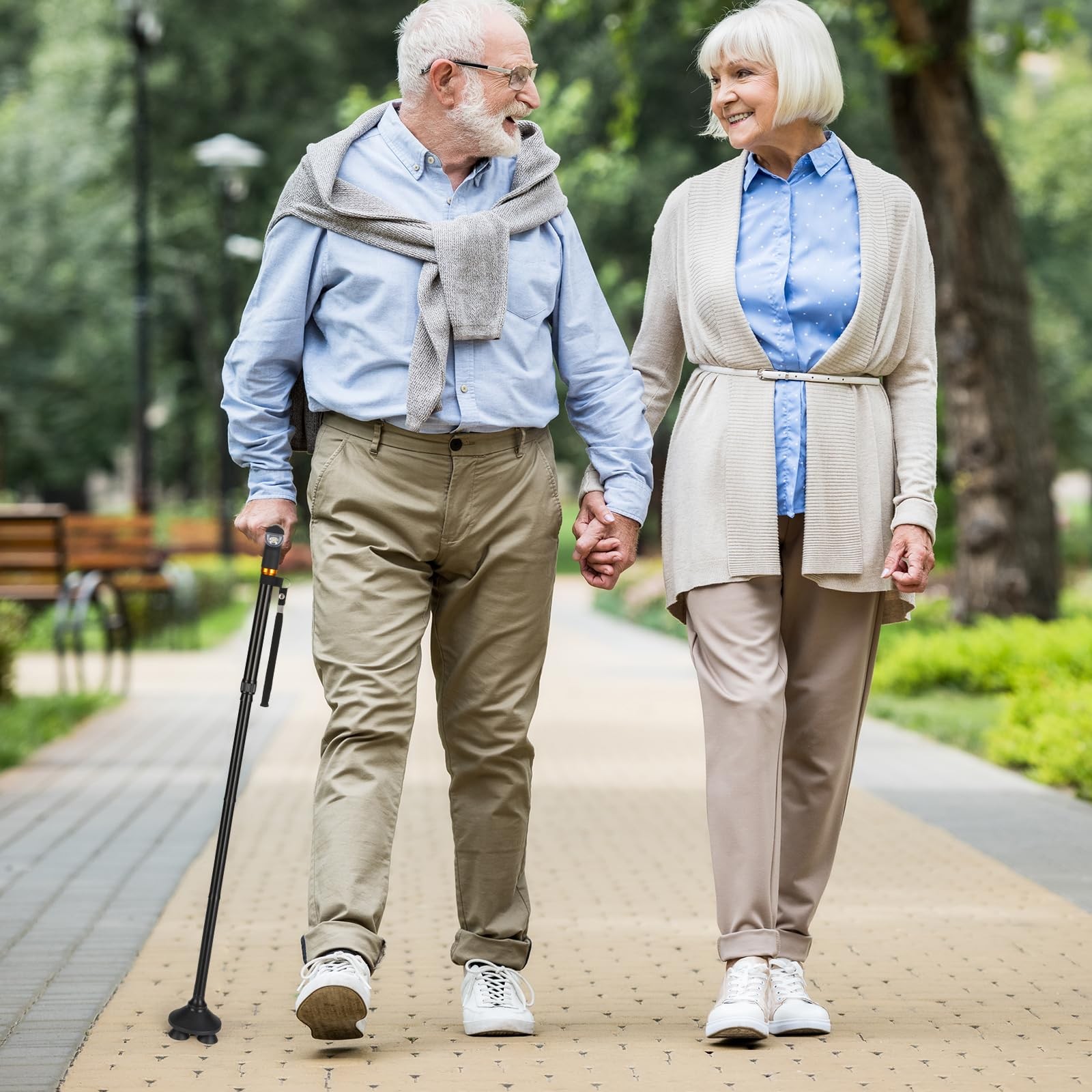 Walking Cane with LED Light - Foldable, Adjustable, Collapsible, Free Standin...