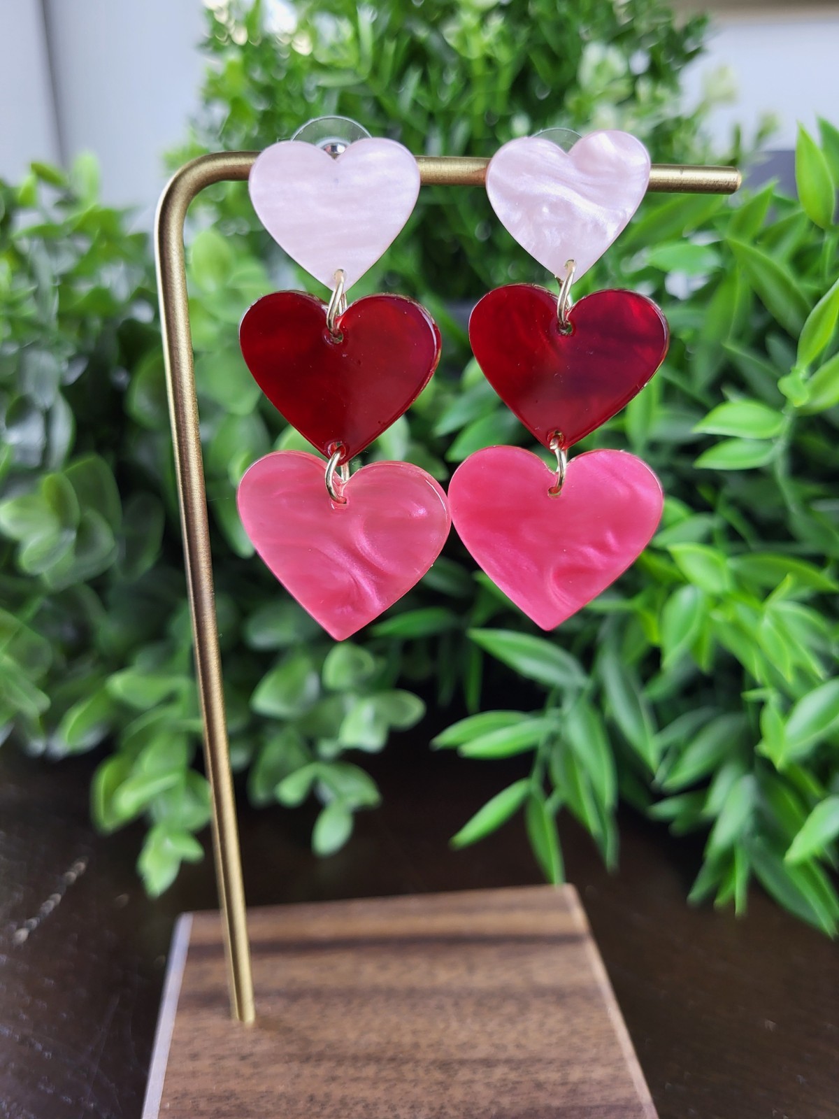 как выглядит Valentine s Day Triple Heart Dangle Earrings Acrylic Pink Red NEW фото