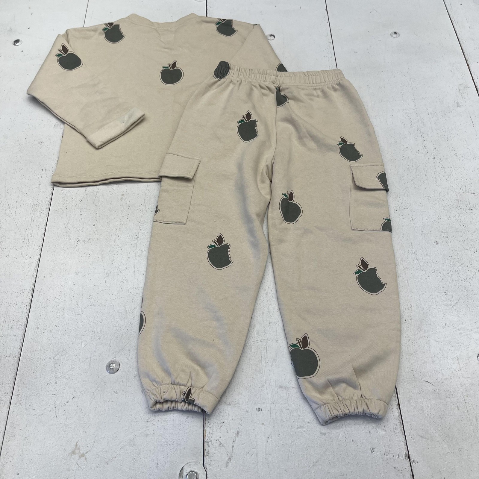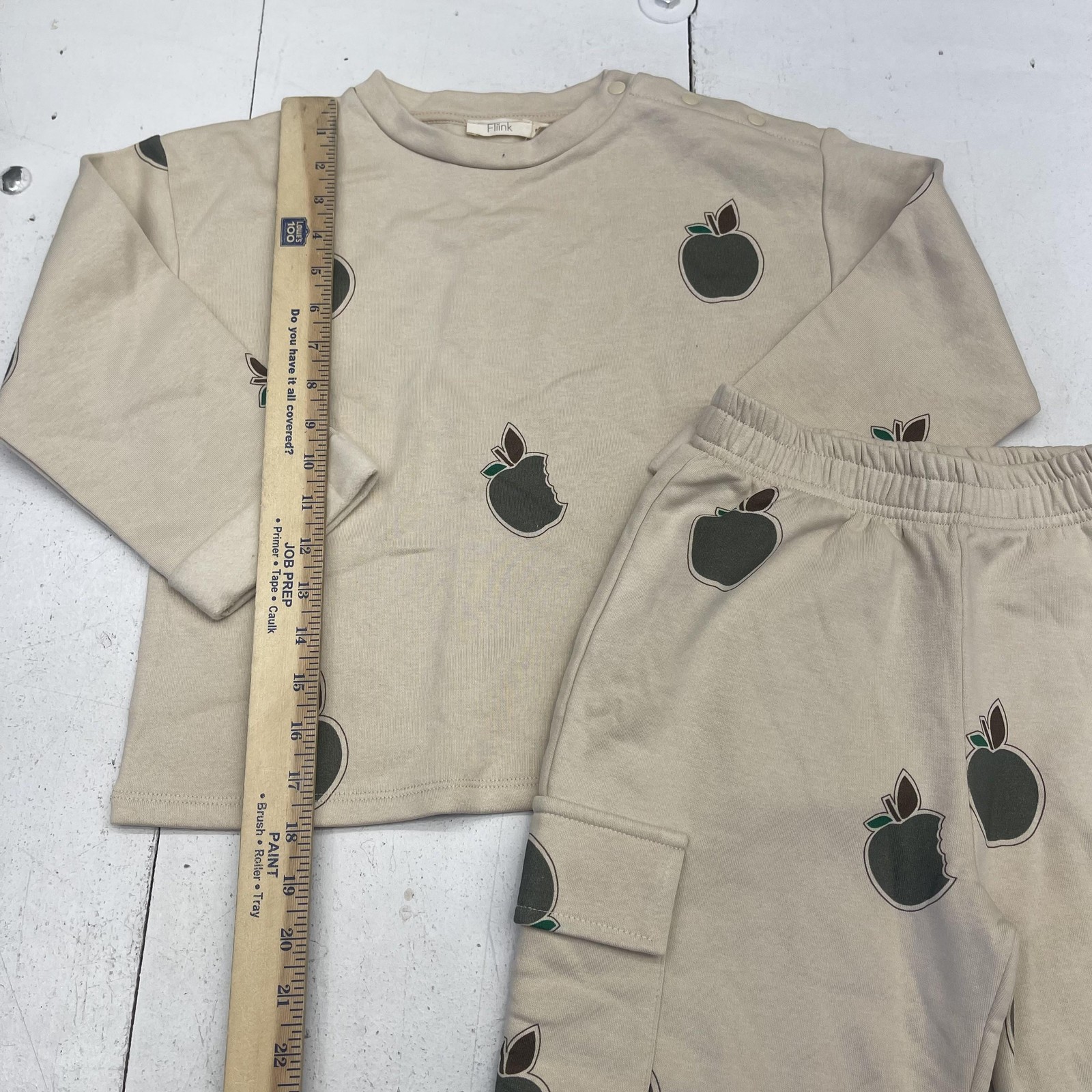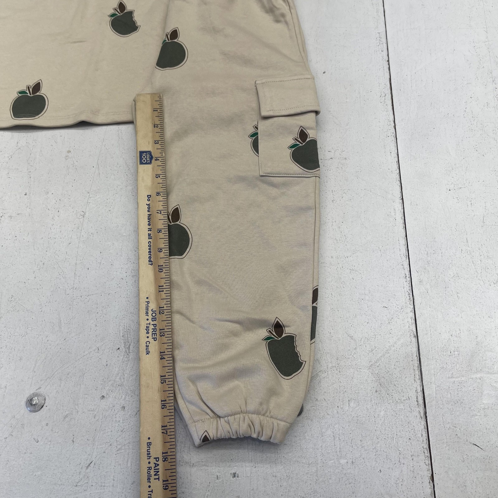 Fliink Sweatshirt Pants Set Boys 6 Beige Apple Print Fleece Cargo 2 Piece Outfit