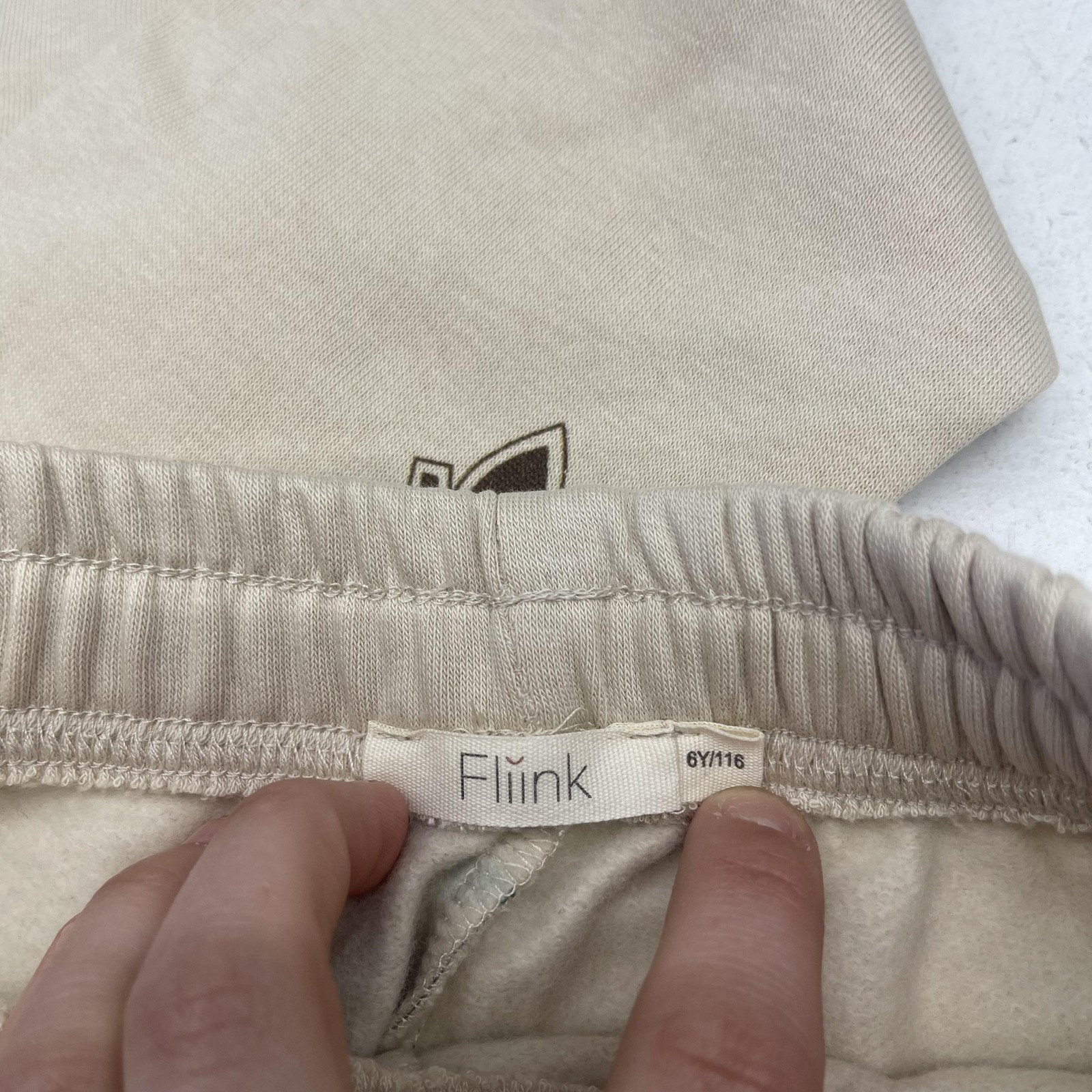 как выглядит Fliink Sweatshirt Pants Set Boys 6 Beige Apple Print Fleece Cargo 2 Piece Outfit фото