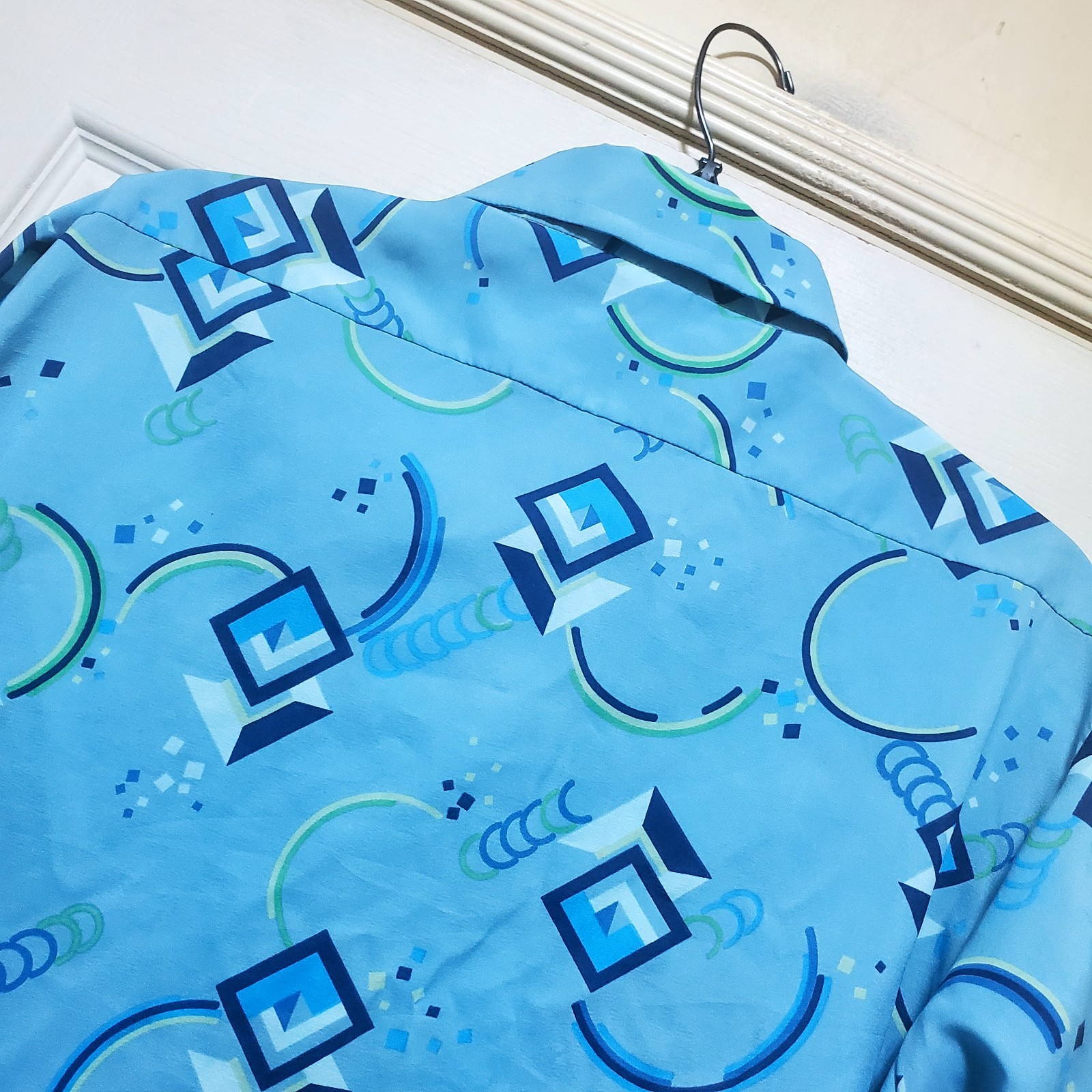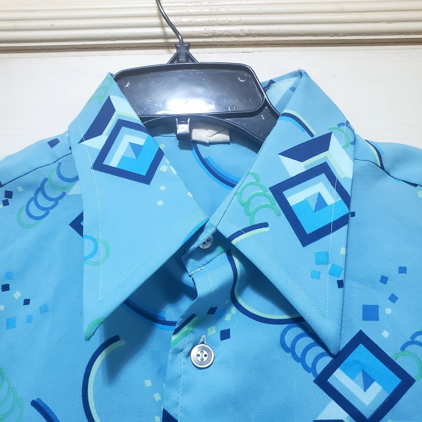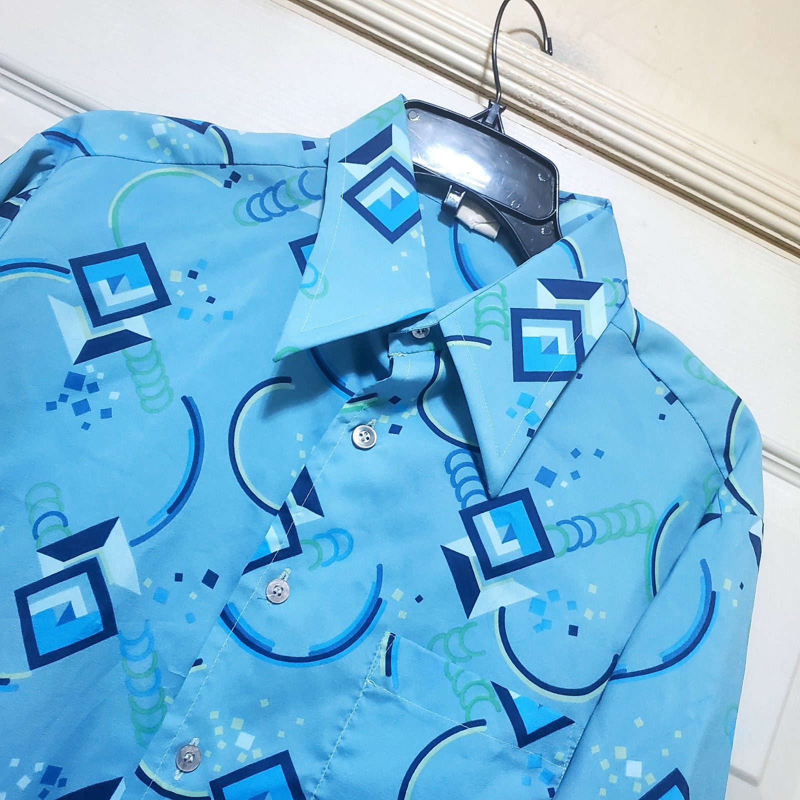 как выглядит Vintage Sears Kings Road Shirt Mens Large Blue Abstract Art 70s Club Disco Ugly фото