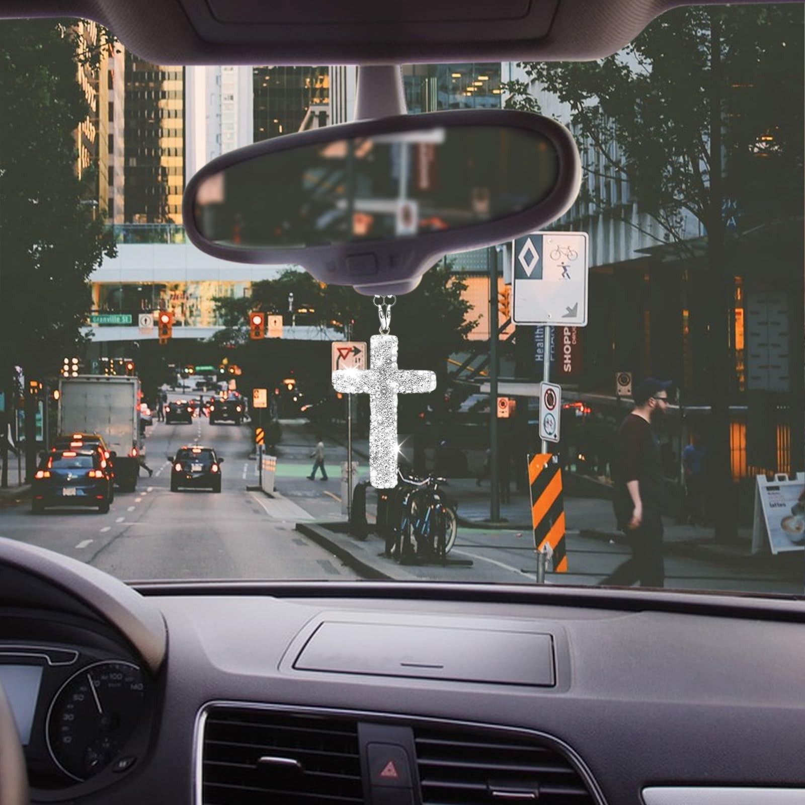 Bling Car Rear View Mirror Cross Pendant Crystal Rhinestone Hanging
