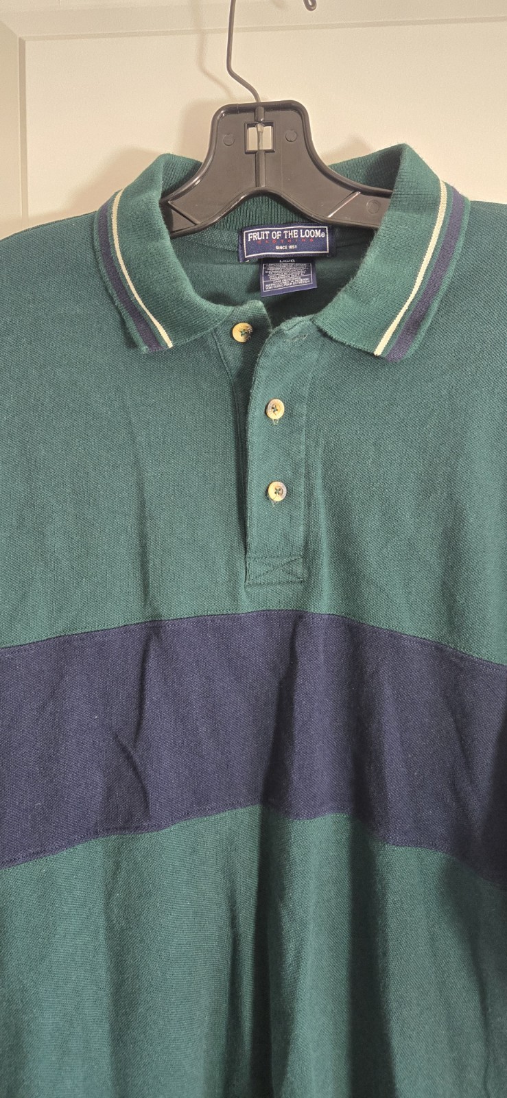 VTG Men's 90's Fruit of the Loom color block ruby polo Long-sleeved Shirt Lg M10