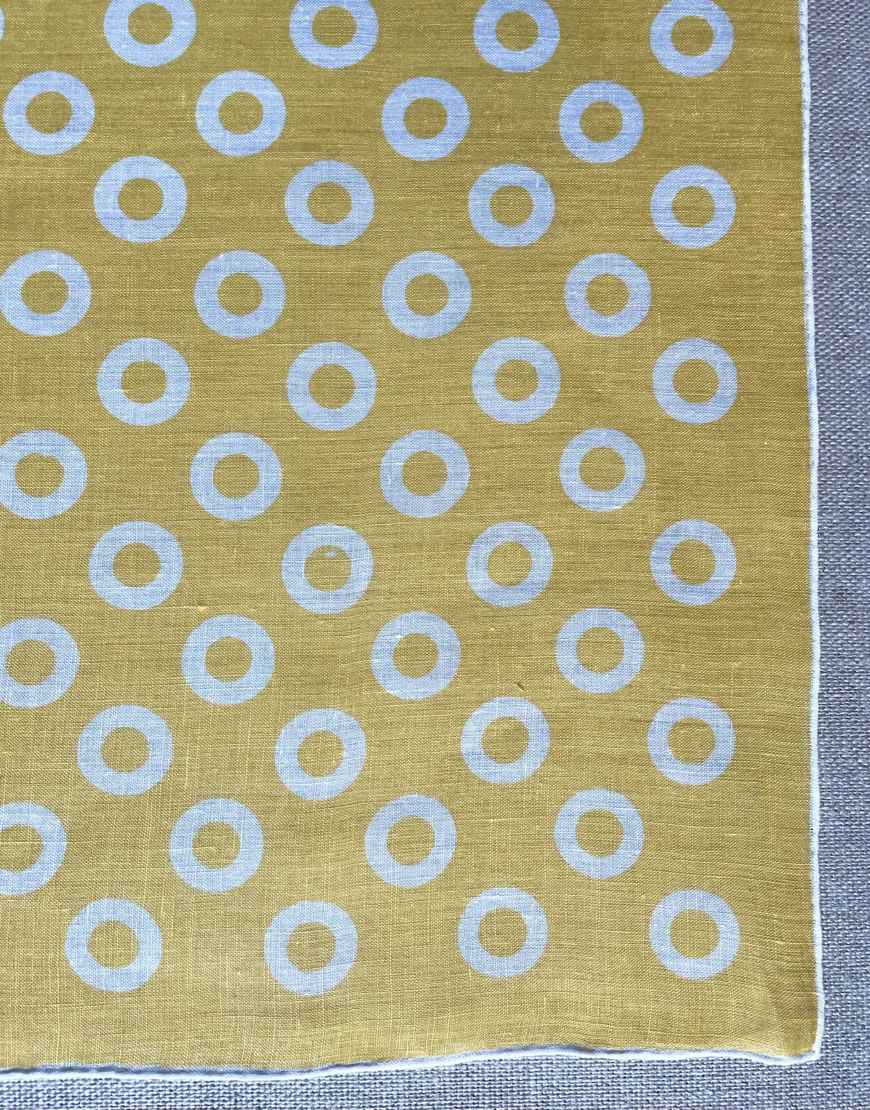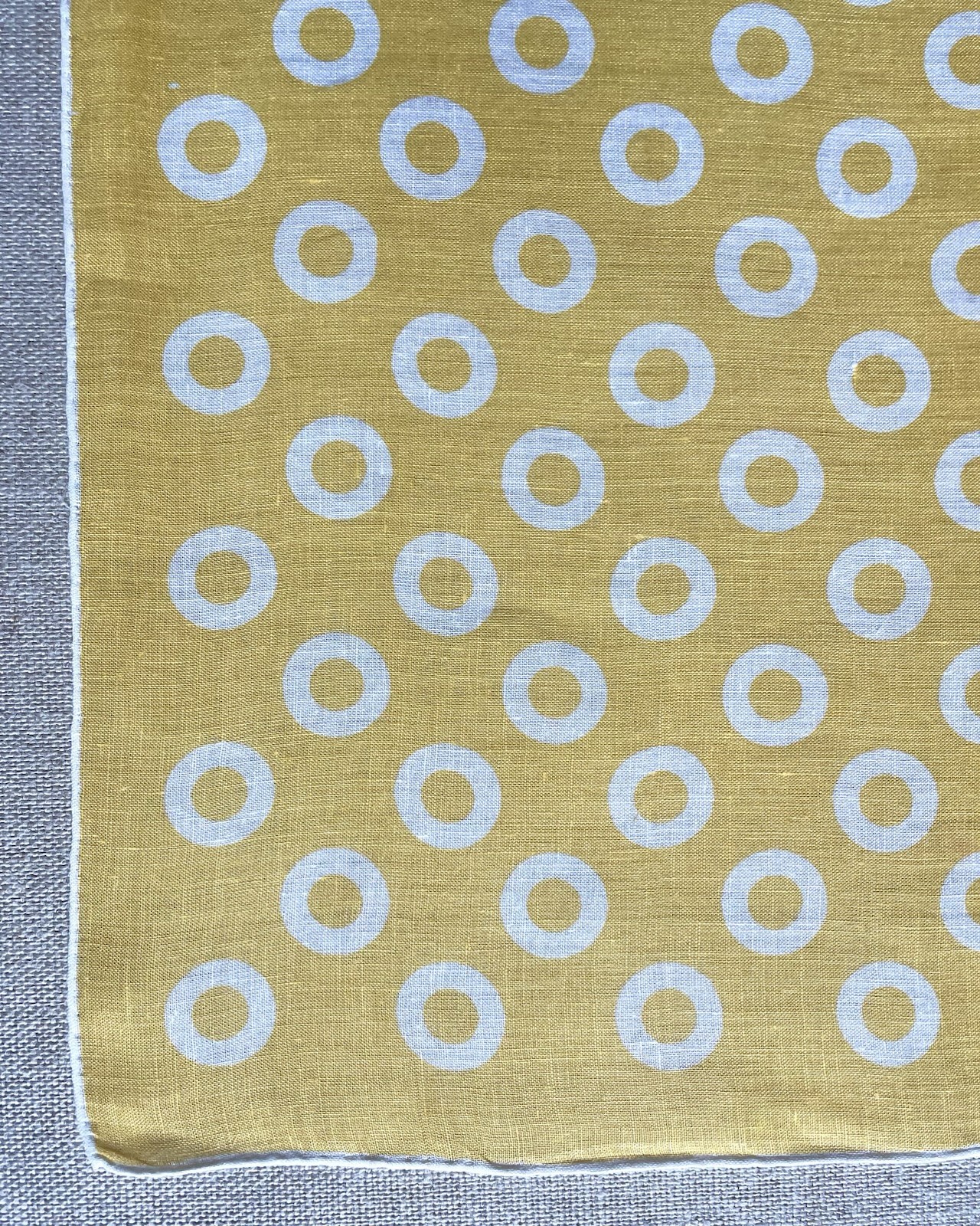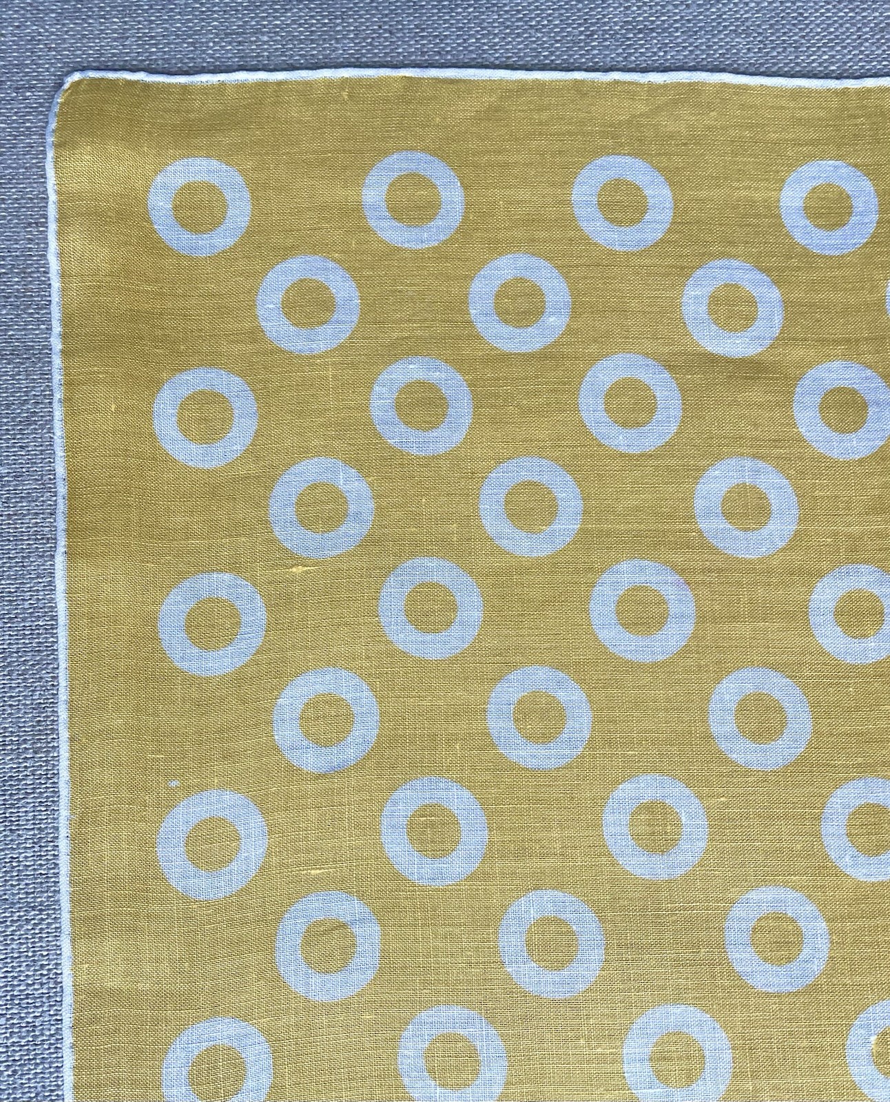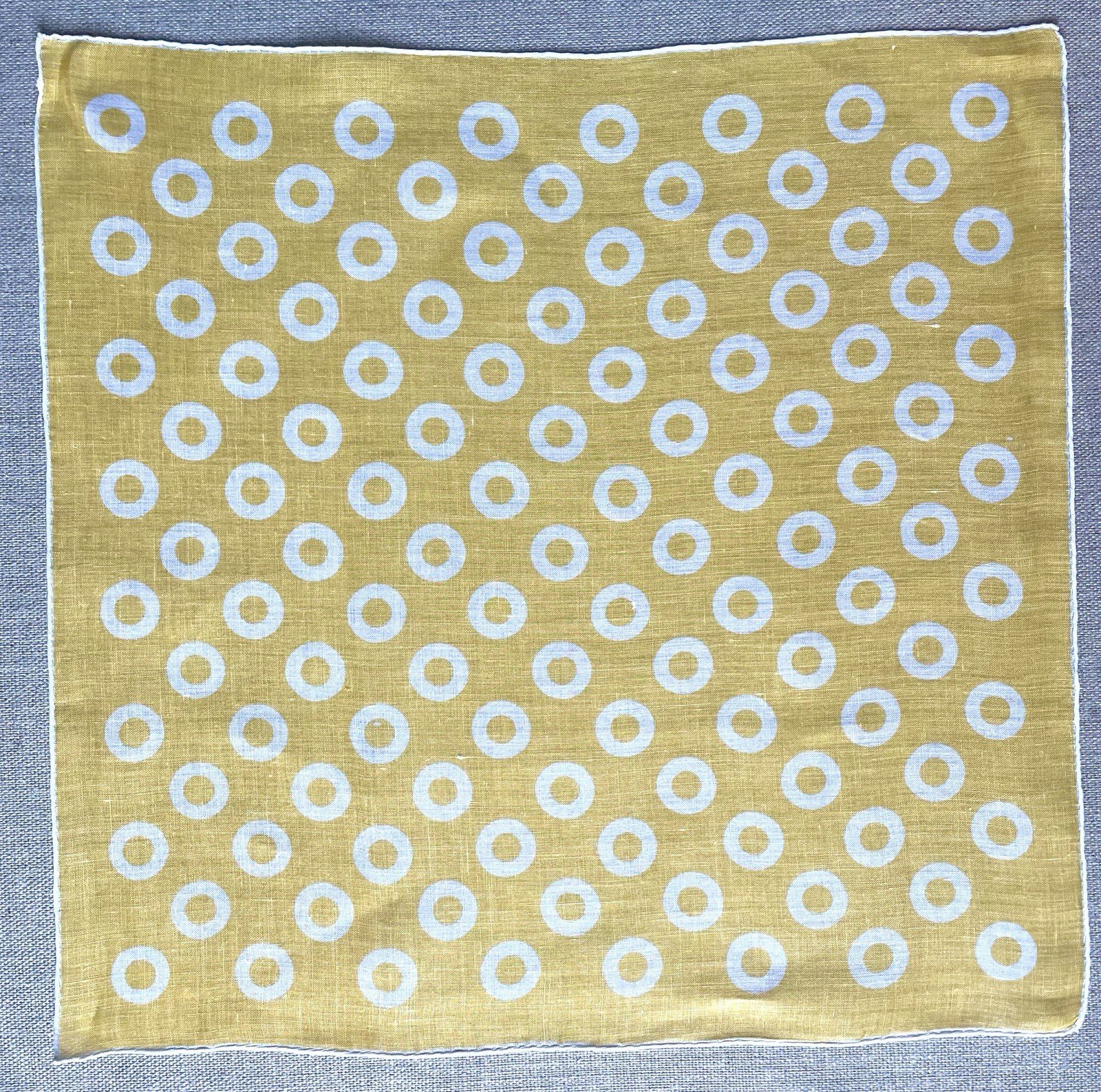 Vintage Yellow w/ Circles Design Handkerchief / Pocket Square Hand Rolled 13.5